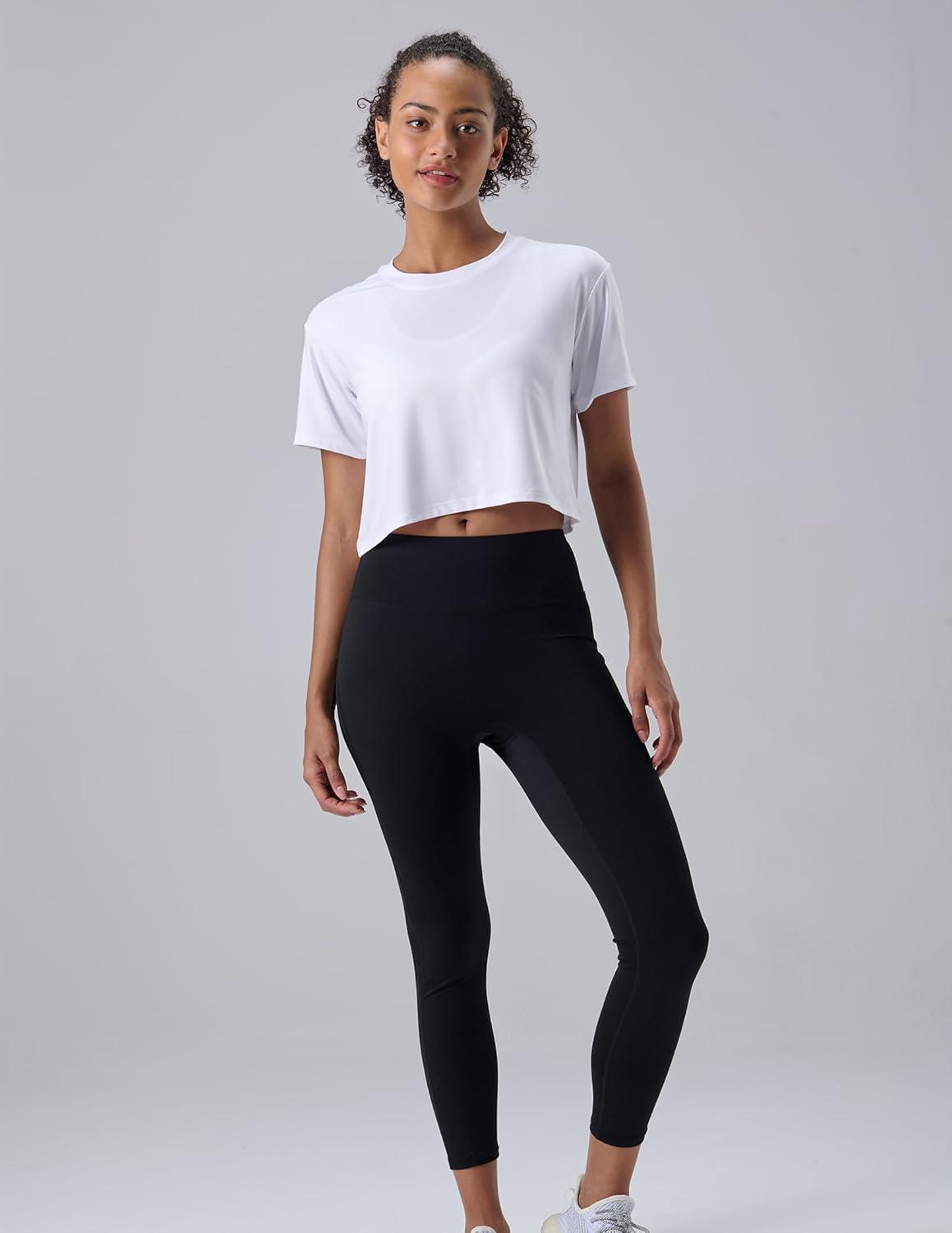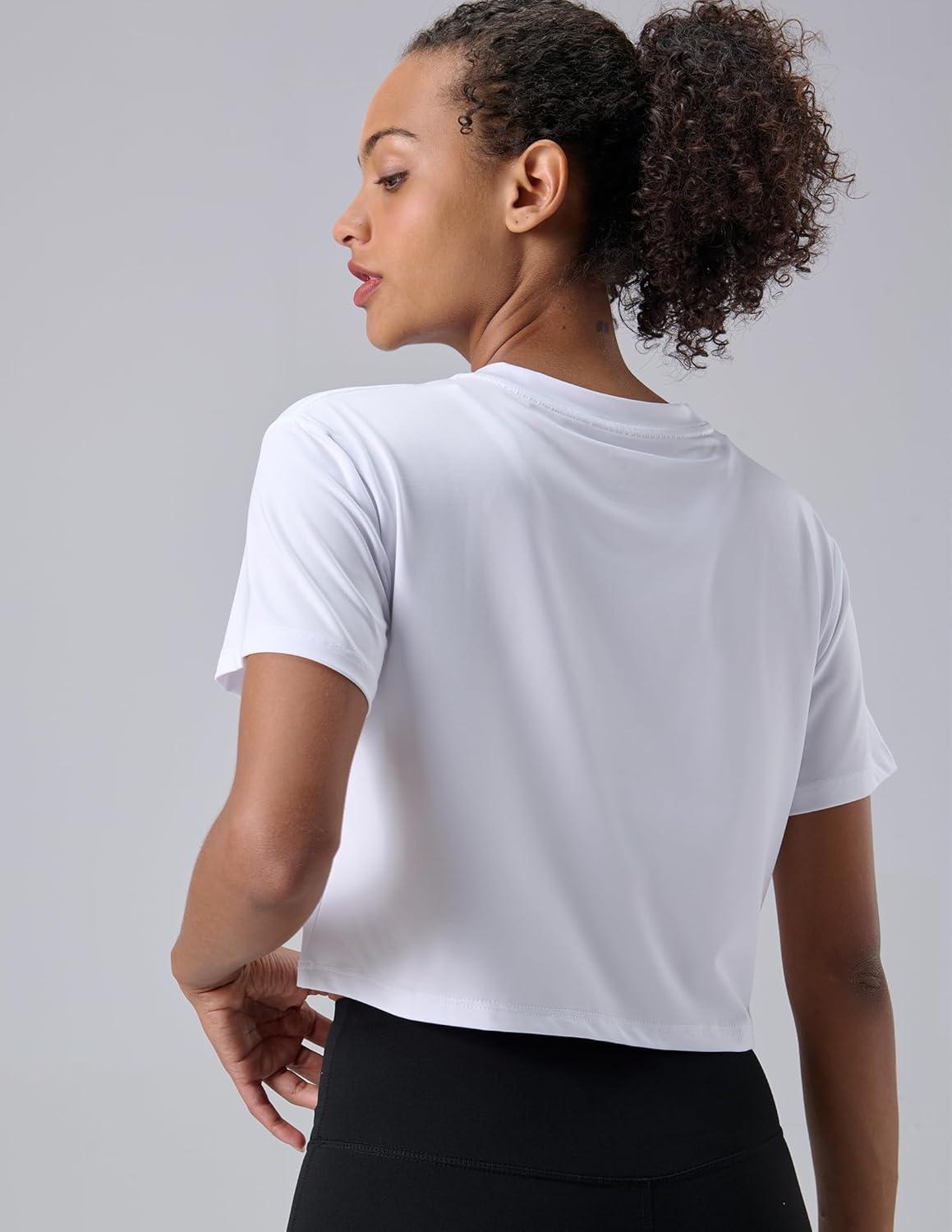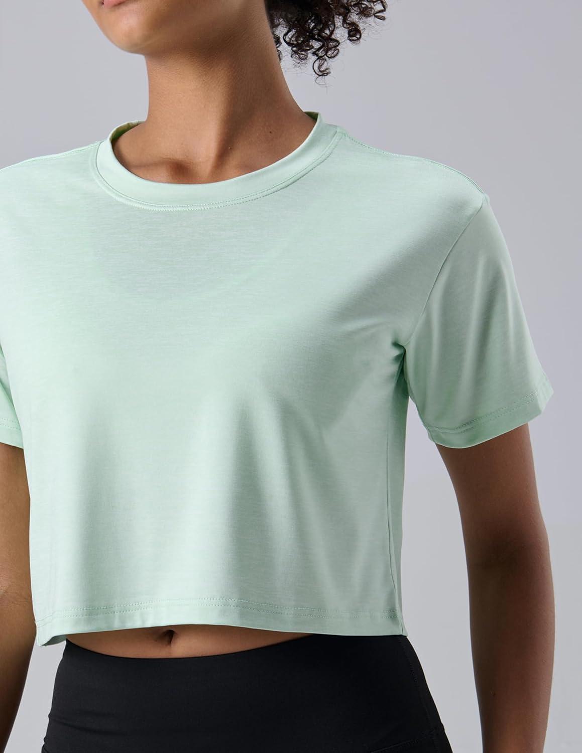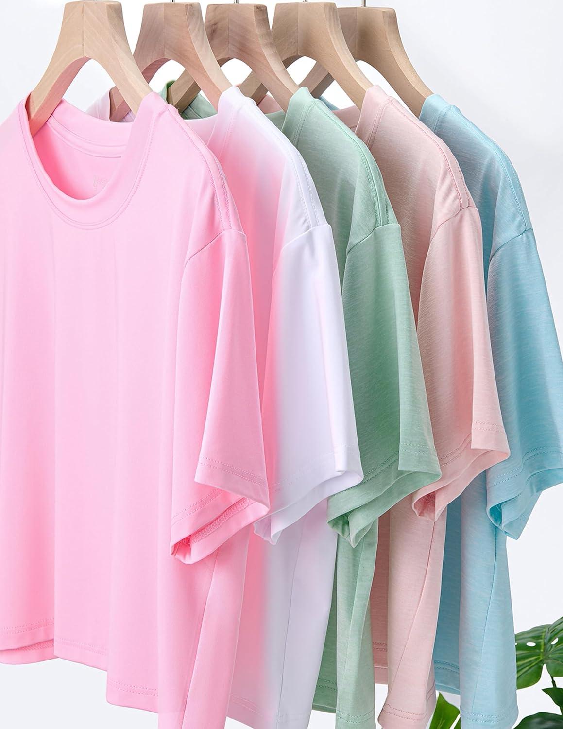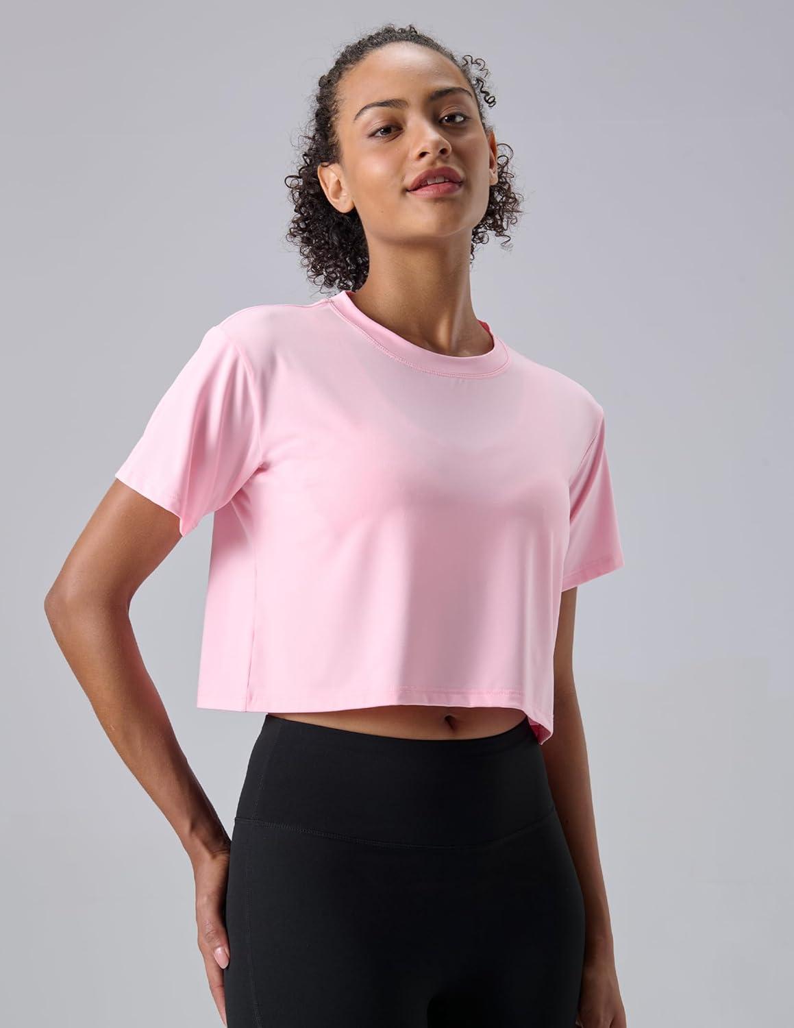 5 Pack: Women’s Workout Crop Tops, Athletic Short Sleeve Gym Shirts Crew Neck Tees(Pink/Mint/White/Baby Blue/Pastel Pink)