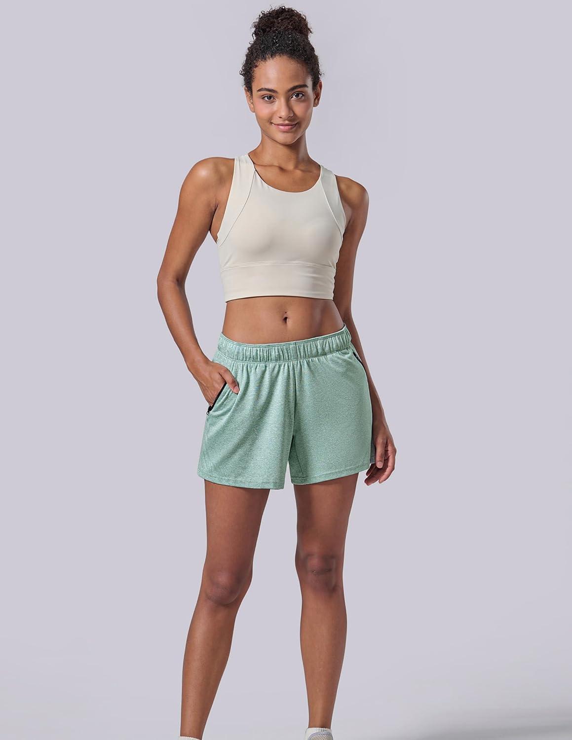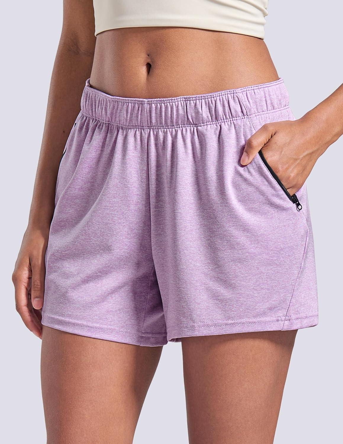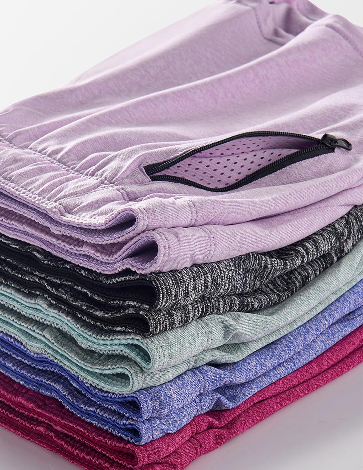 5 Pack: Womens Workout Gym Shorts Casual Lounge Set, Ladies Active Athletic Apparel with Zipper Pockets(Lilac/Black/Cherry/Orchid/Sage Green)
