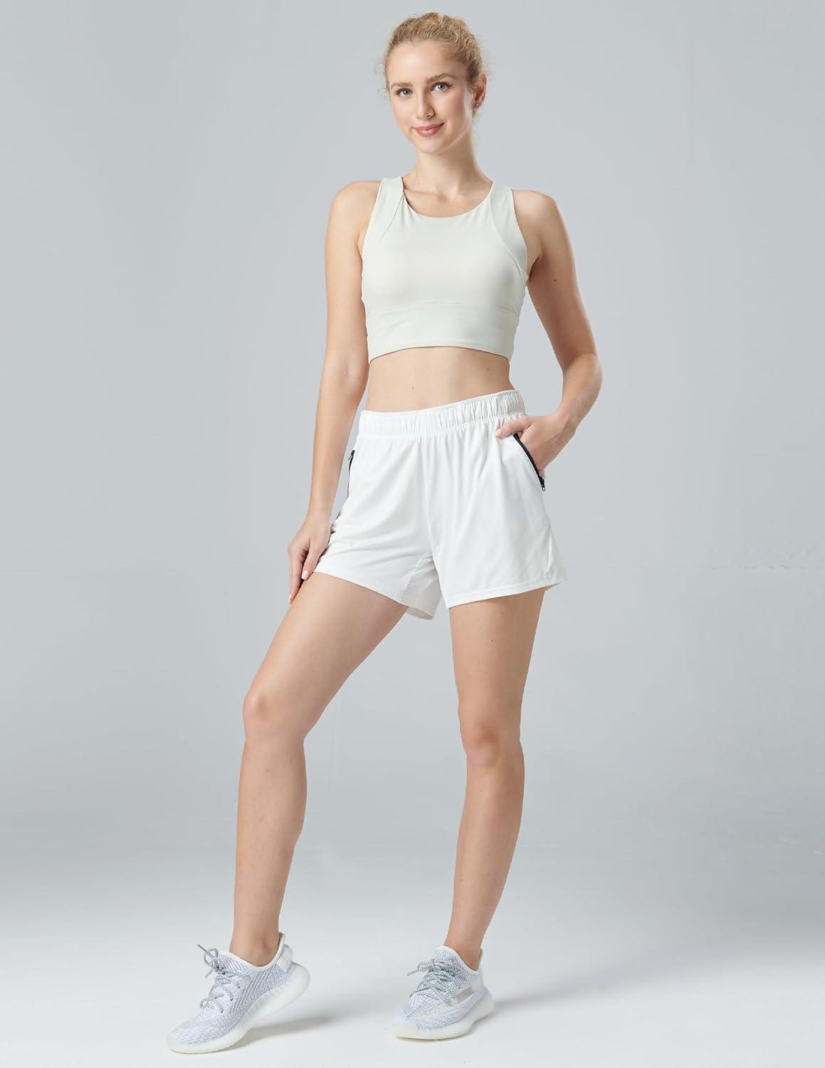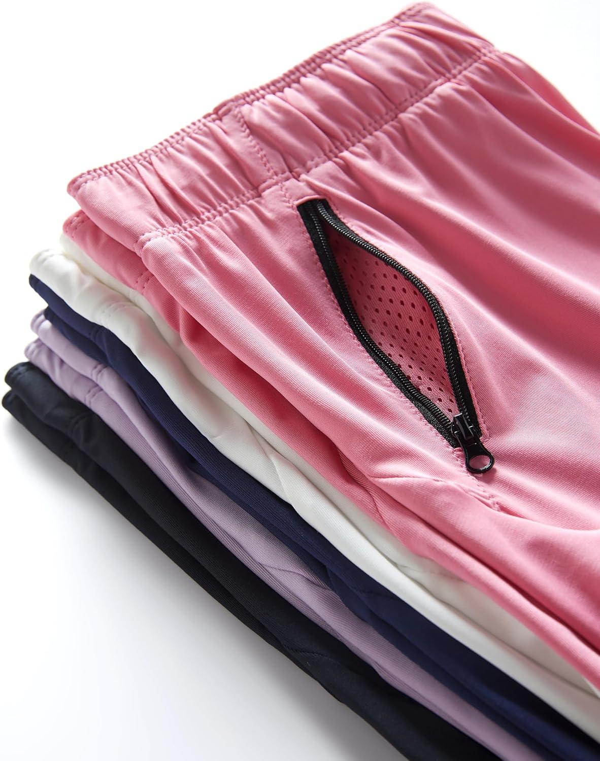 5 Pack: Womens Workout Gym Shorts Casual Lounge Set, Ladies Active Athletic Apparel with Zipper Pockets(Pink/Navy/Black/White/Lavender)