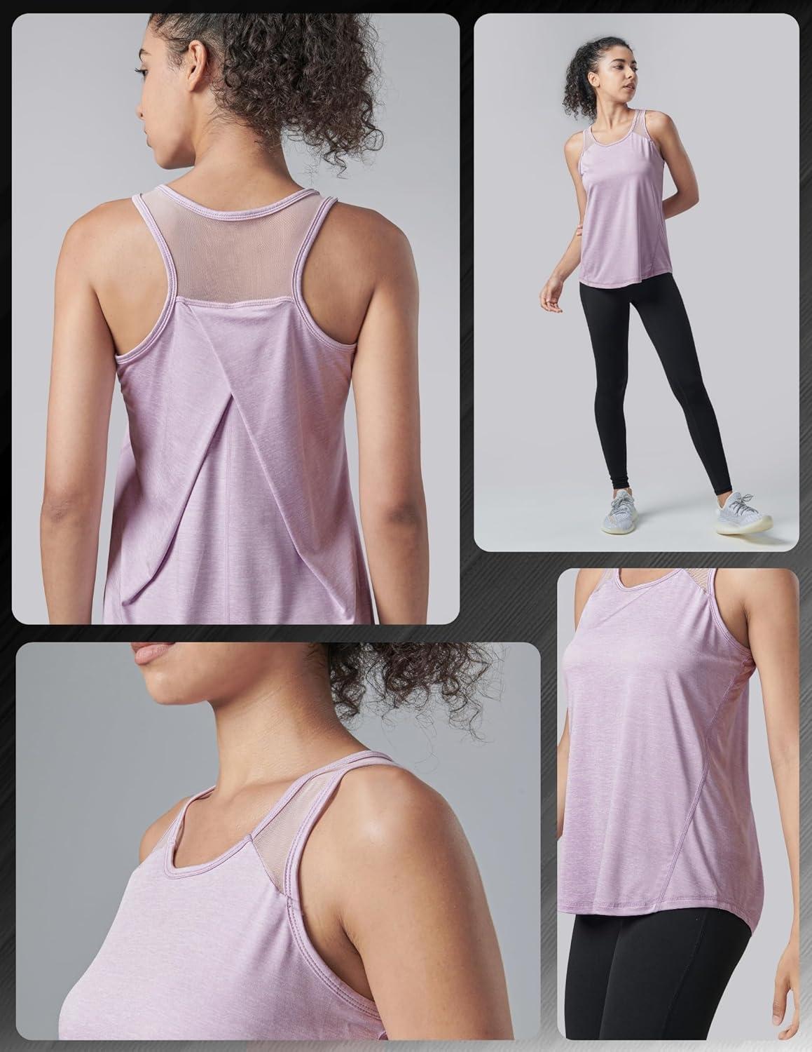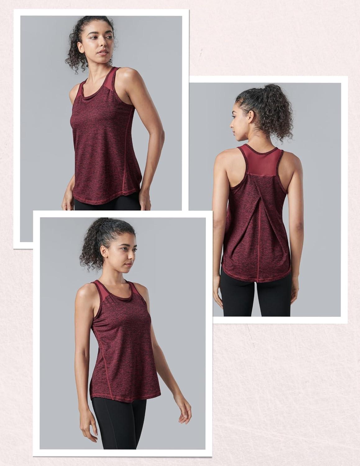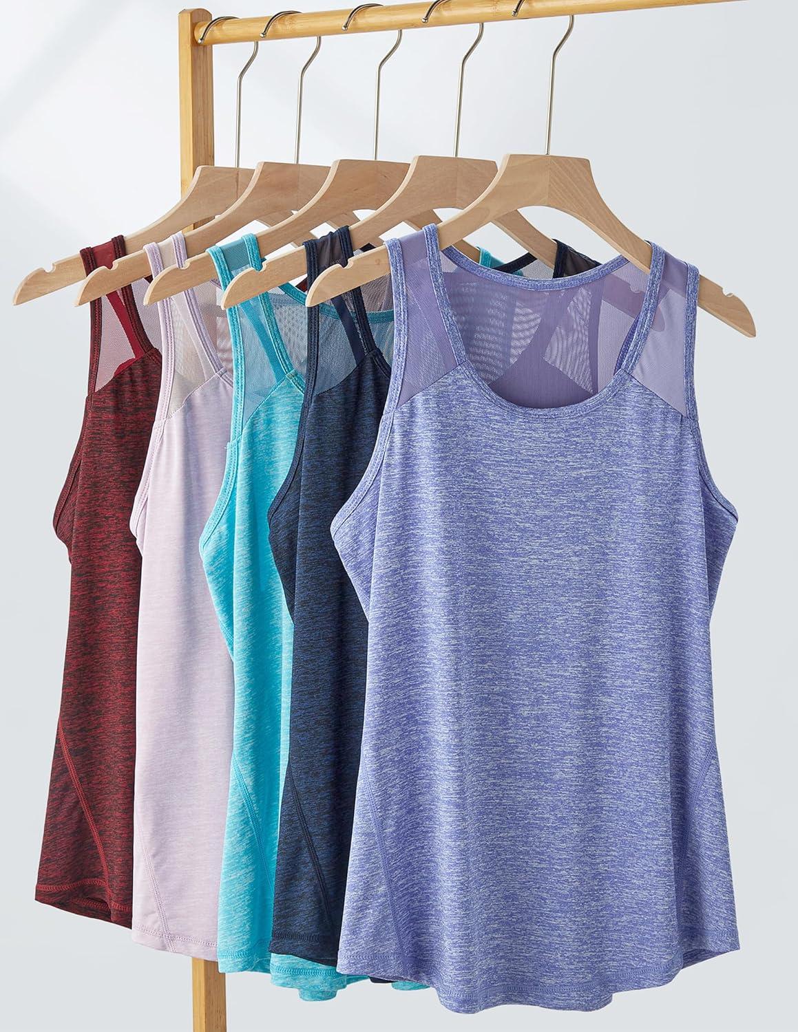 5 Pack Women’s Workout Tops, Athletic Racerback Tank Tops for Women, Mesh Sleeveless Shirts Yoga for Gym Running(Aqua/Navy/Orchid/Maroon/Baja Blue)