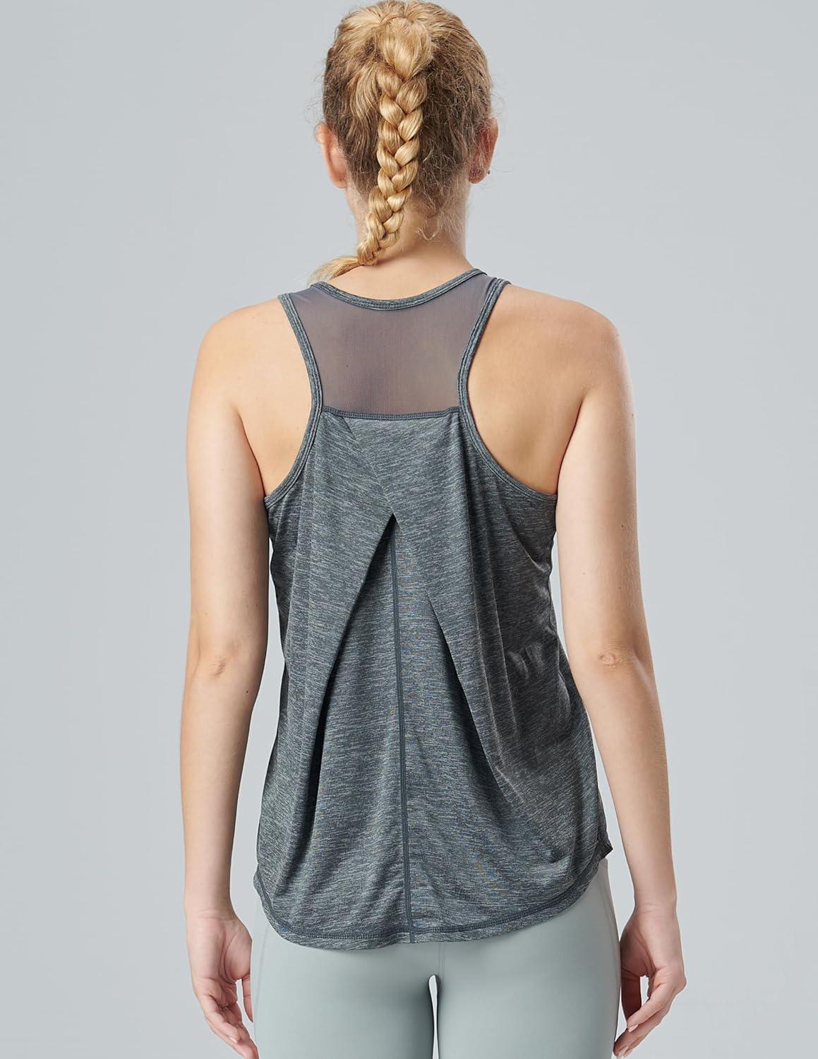 5 Pack Women’s Workout Tops, Athletic Racerback Tank Tops for Women, Mesh Sleeveless Shirts Yoga for Gym Running(Heather Baby Blue/Lime Yellow/Purple/Red/Charcoal)