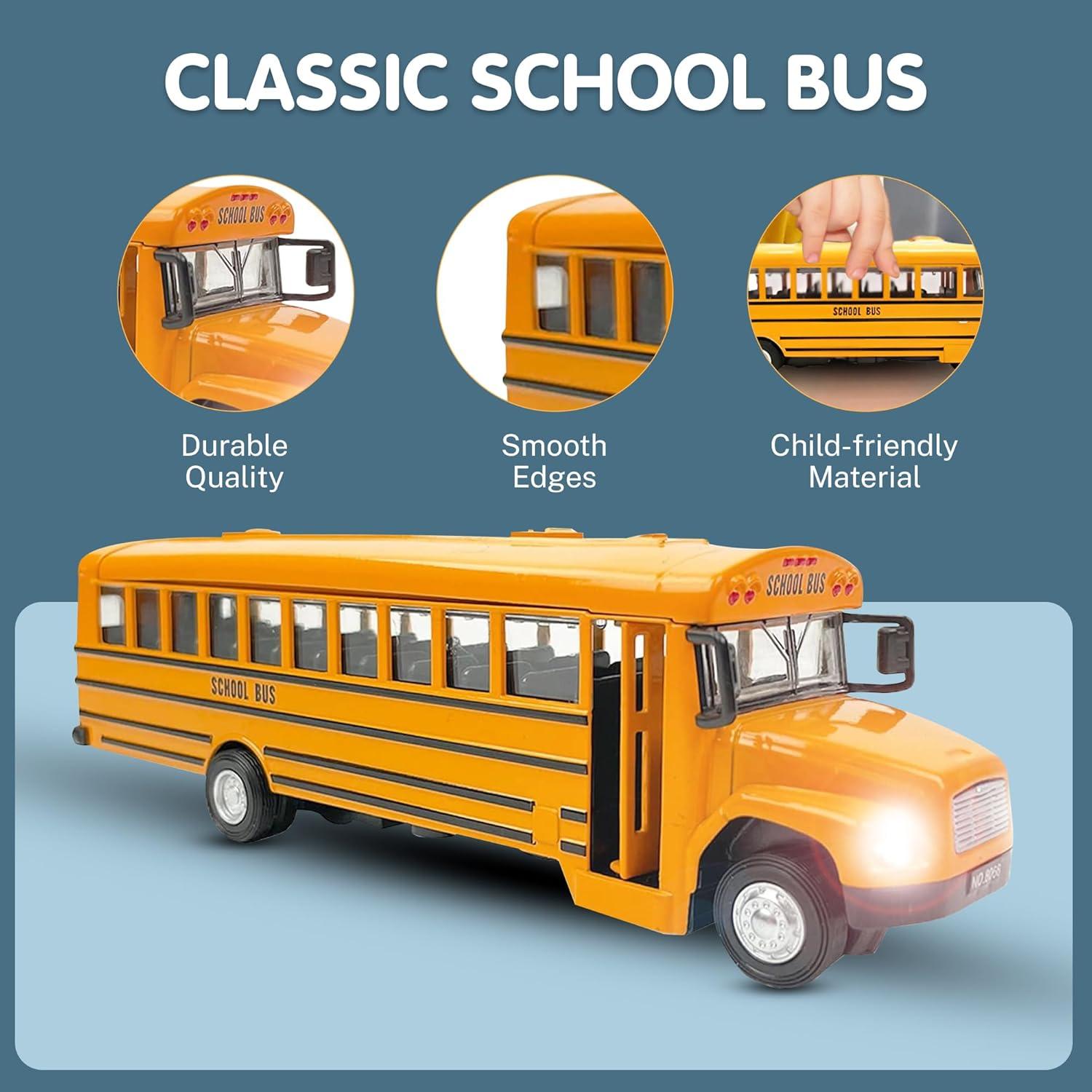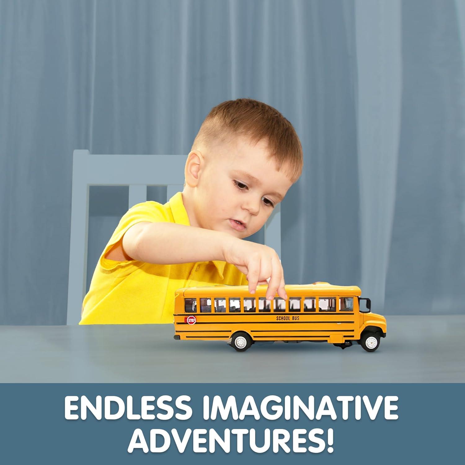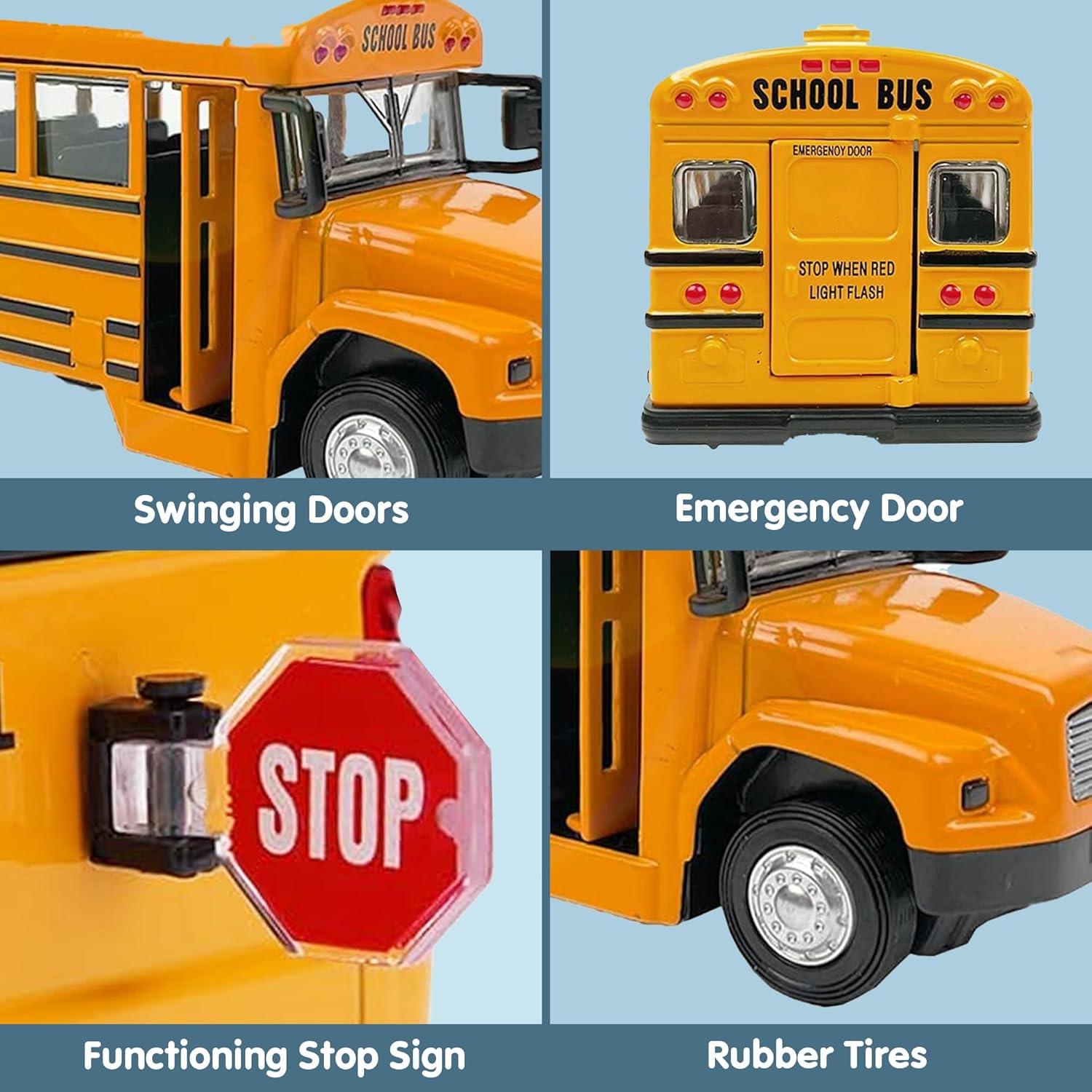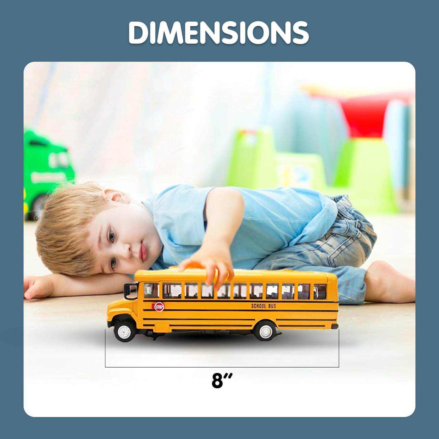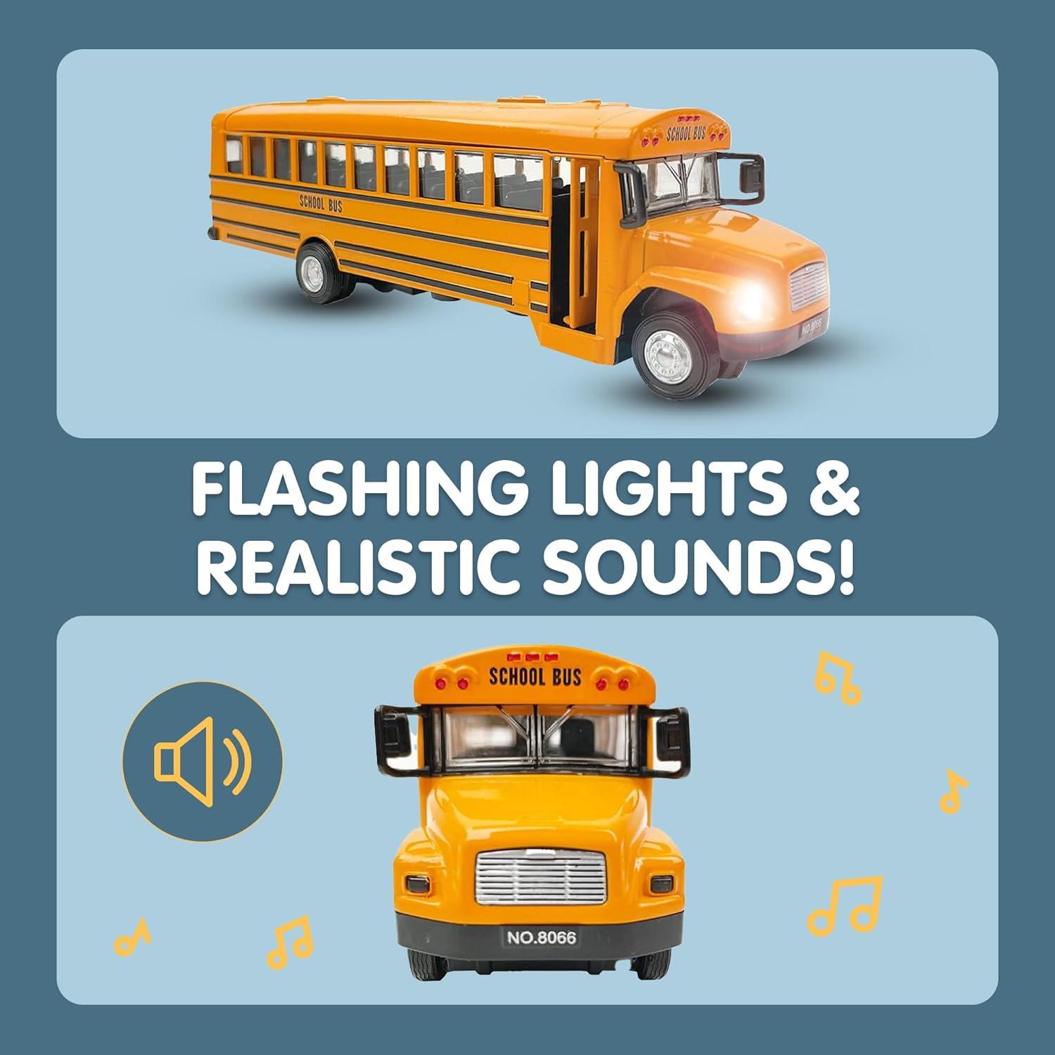Classic school bus toy: 8″ diecast yellow school bus replica with realistic details, opening doors, working lights, and authentic sounds; perfect for kids who love toy vehicles and imaginative play