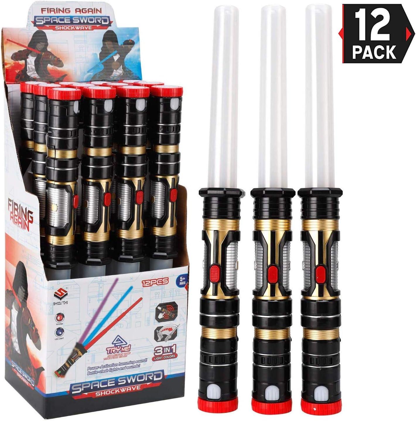 Liberty Imports 12 Pack: LED Light Up Sabers Set – Color Changing Motion Sensitive Retractable Swords with FX Sound Effects for Themed Parties, Bulk Party Favors and Cosplay