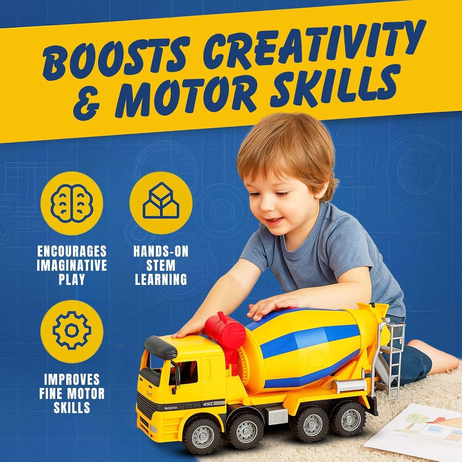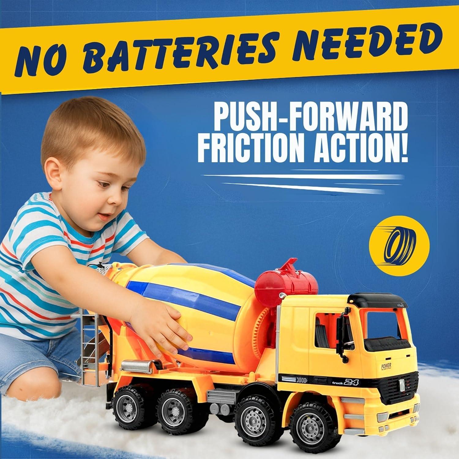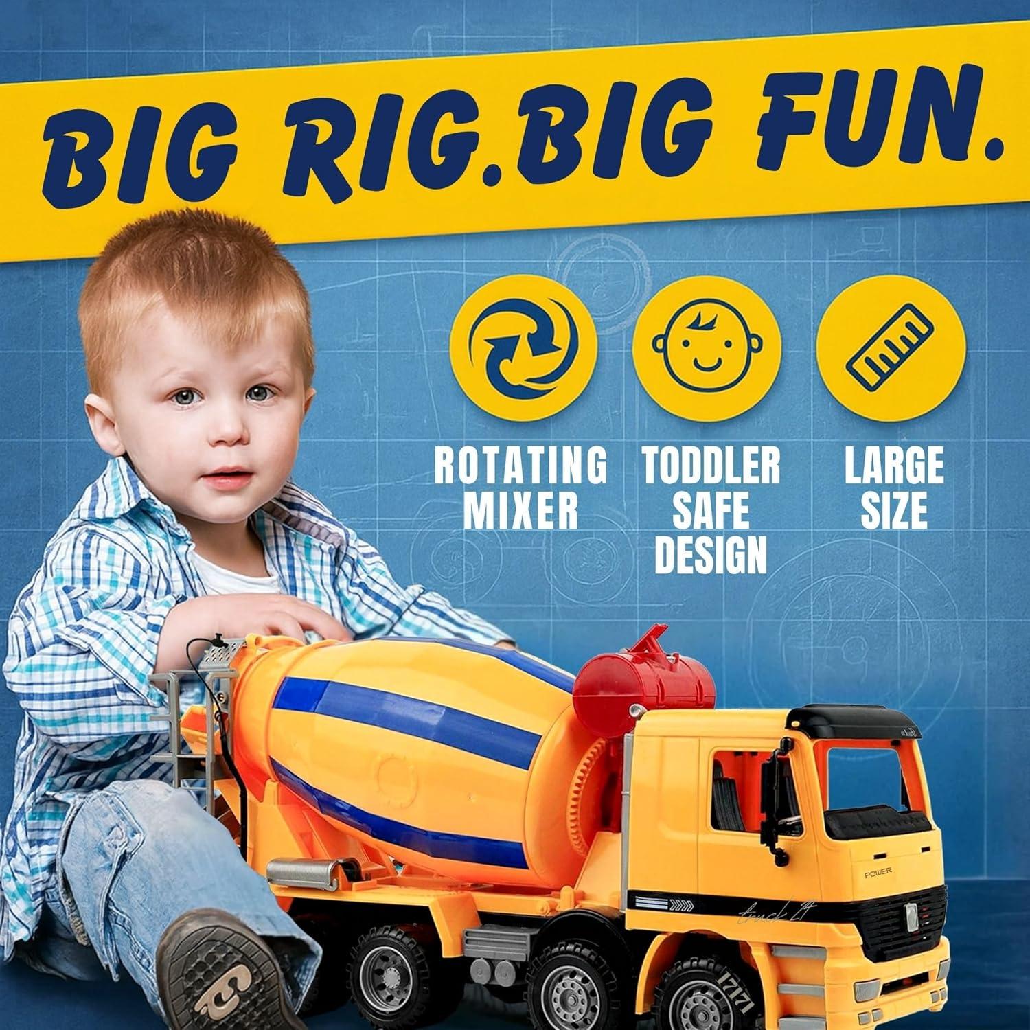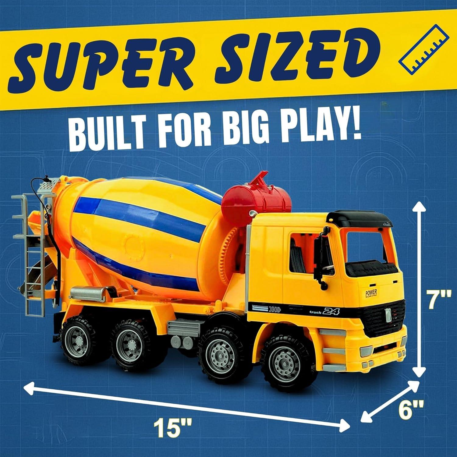 Realistic Construction Design – Oversized 15-inch cement mixer truck toy built at 1:22 scale for lifelike play, perfect for kids who love construction vehicles and building fun.