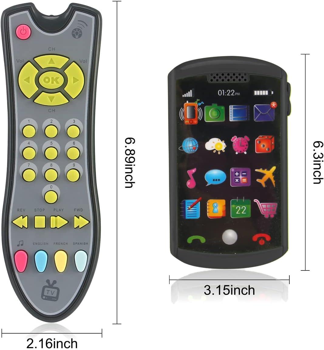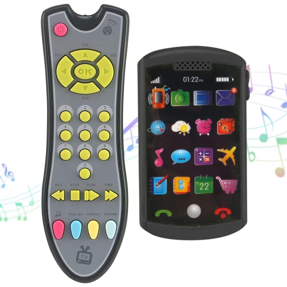 Liberty Imports 2 Pack My First TV Remote Control and Mobile Smartphone Kids Musical Toy Bundle Set – Realistic Music Learning Remote Phone Pretend Playset with Lights and Sounds