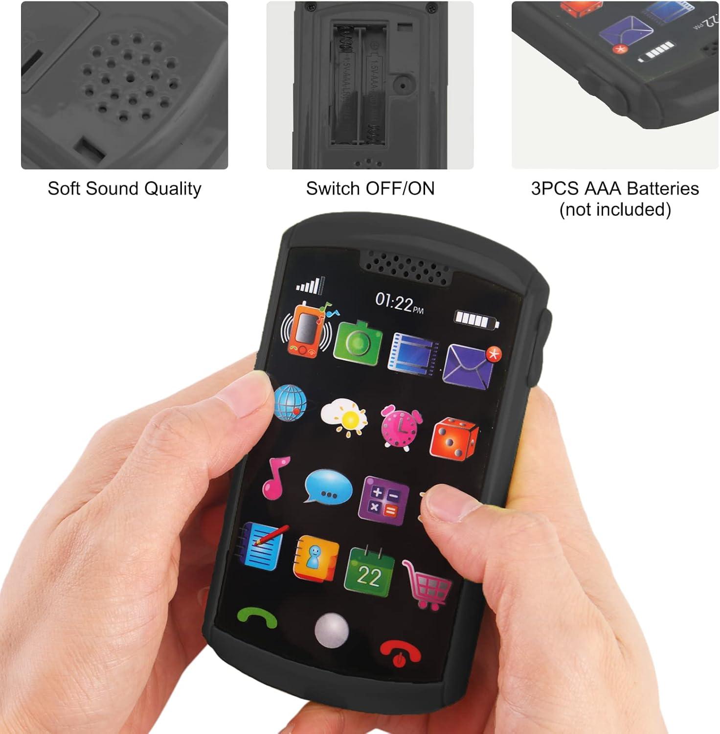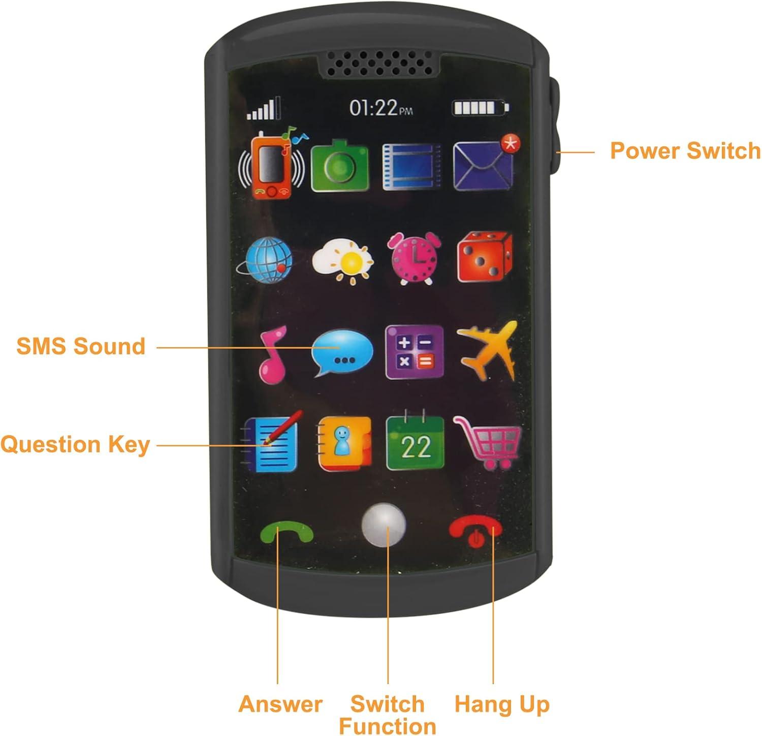 With music, sound effects and lights, this duo of toy devices introduces your little one to technology, colors, numbers and language. A funny remote control and cell phone to play with and imitate grown-ups! The remote control features 4 game modes and triggers silly sounds and lights. There are 24 rubber keys of different shapes to change channels, volume and make use of the DVD function, each with their own sound effect to encourage little ones to discover the sounds of everyday life and learn through role play! Smartphone: 18 icons on the pretend screen to trigger speech and sound effects or music, camera sound, or place a pretend call. Leave the phone idle for a few seconds and it calls you back. Light flashes with each sound. In a modern age, it is important for kids to be familiar with technology. These toys will give them the introduction they need to a world of electronic fun and offer your child hours of entertainment for growing and learning. Not only are these toys entertaining, but they also encourage learning through role play. The small buttons are designed for little hands, making pressing buttons super fun and exciting. Your child will develop their imagination and creativity while learning about technology and the world around them. This toy bundle set requires 2 AAA batteries (not included) and is recommended for children ages 12 months and up. Give your child the gift of their own remote control and phone with this fun and educational toy set. Ages 12 Months and up.