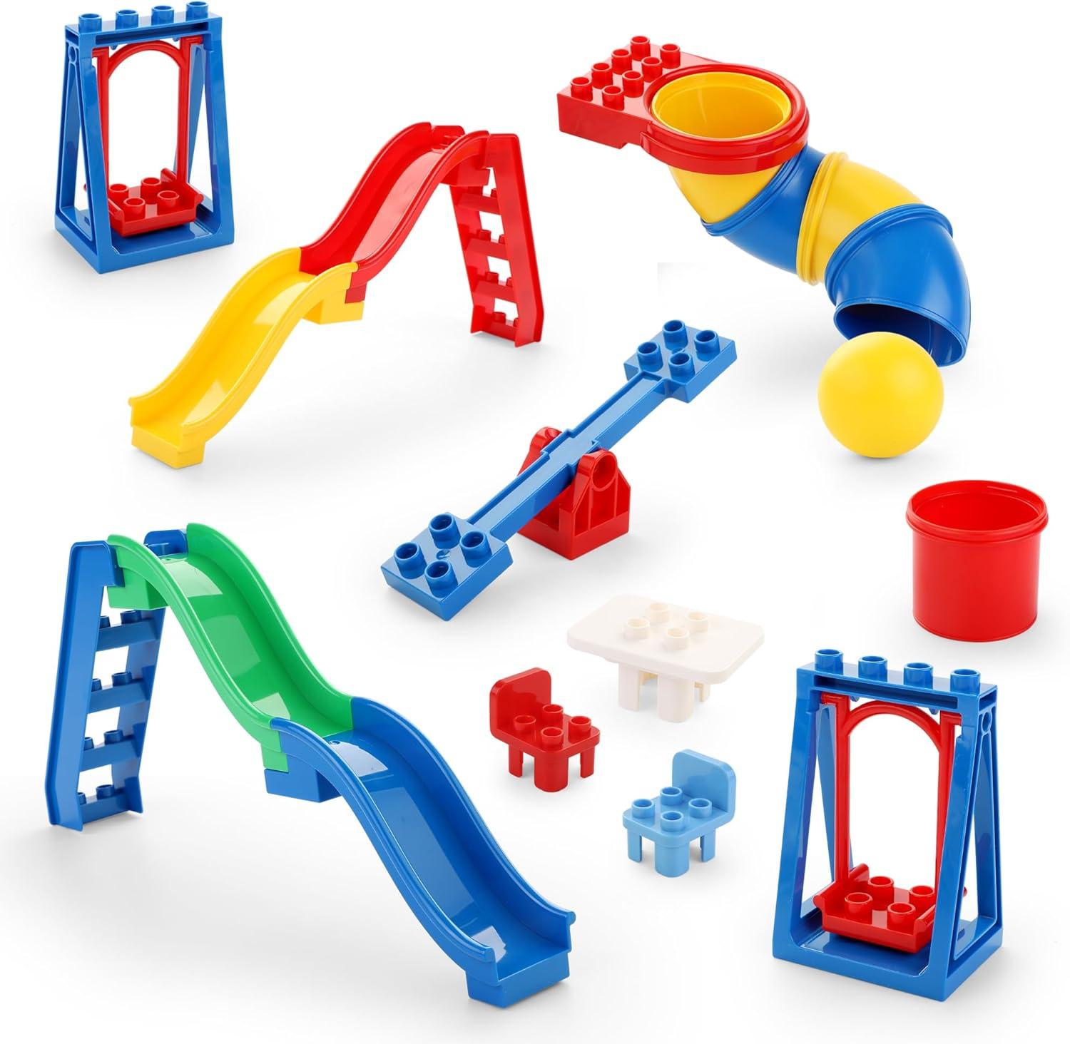 Plenty of Accessories: Includes 5 pipes, 1 ball, 1 tube holder, 6 slides, 2 swings, 1 seesaw, 2 stairs, 2 chairs, and 1 table for endless creative fun