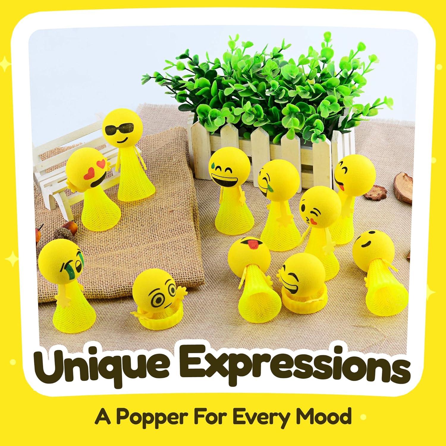 Party Poppers: 24-pack emoticon spring poppers in multiple fun colors; perfect for playtime with family and friends