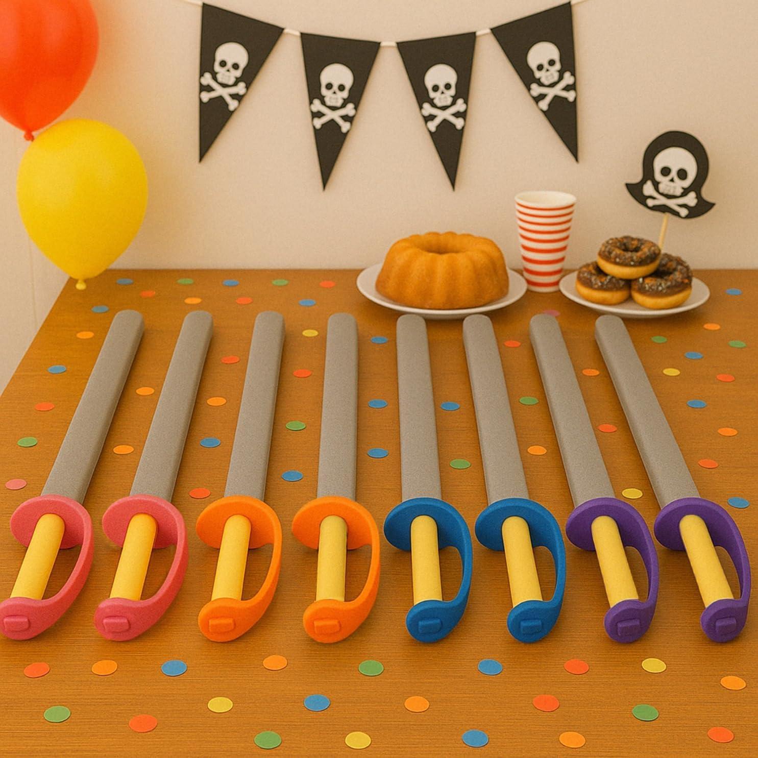 Value Pack: Set of eight giant pirate foam swords for kids' birthday parties and events; perfect for hours of active, imaginative play