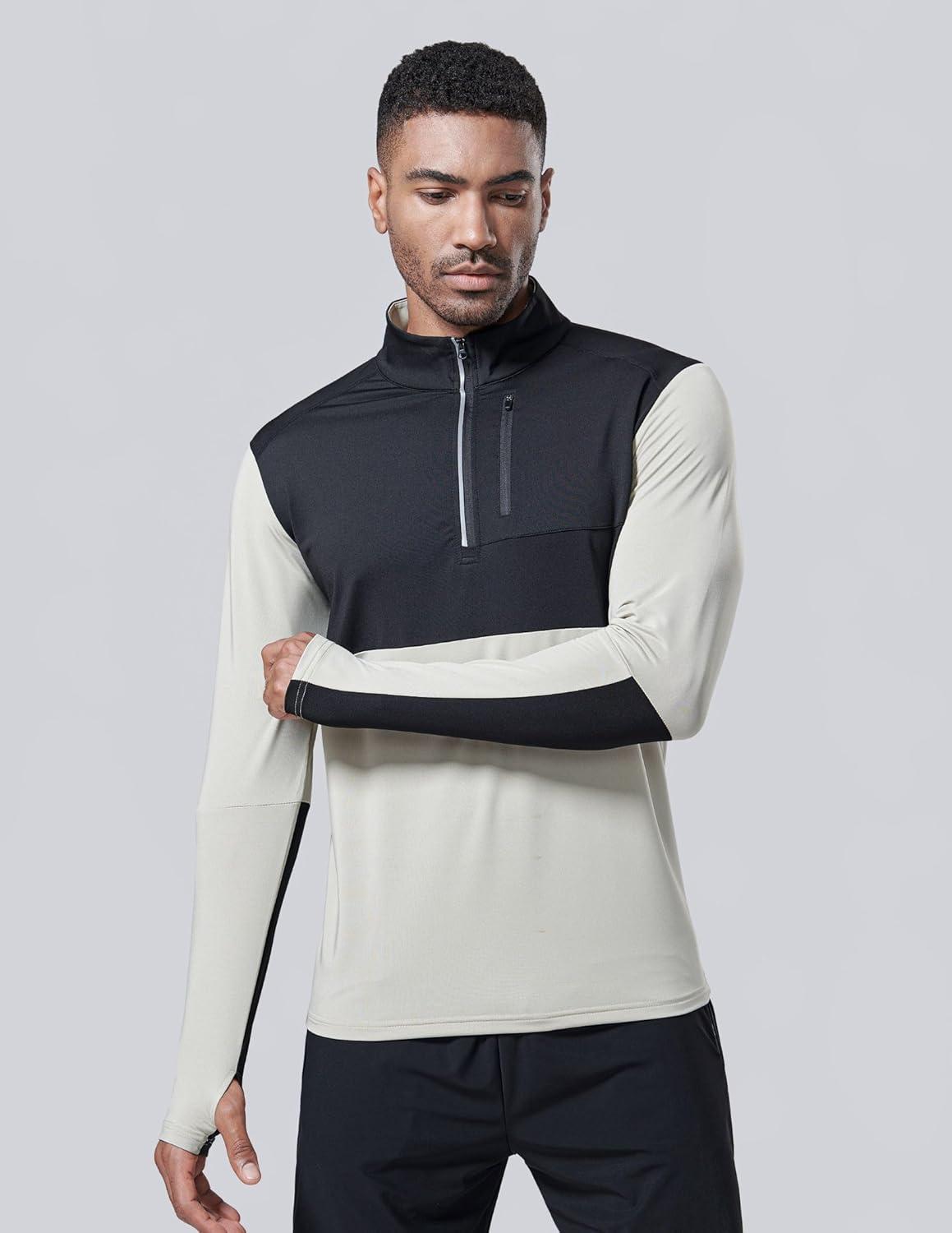 Liberty Imports 3-Pack Men’s Quarter-Zip Pullover Lightweight Long Sleeve Athletic Jackets Performance Workout Running Shirts(Gray/Khaki/Blue)