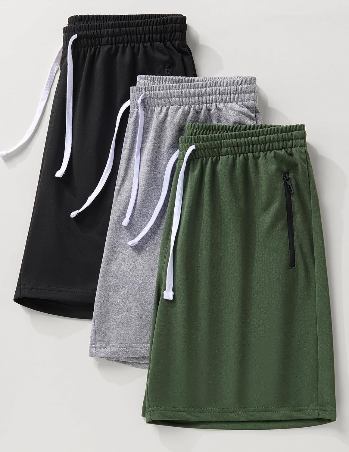 Liberty Imports 3 Pack Mens Sweat Shorts Athletic Casual Jogger Shorts with Zipper Pockets, Terry Performance Tech Activewear(Gray/Olive/Black)