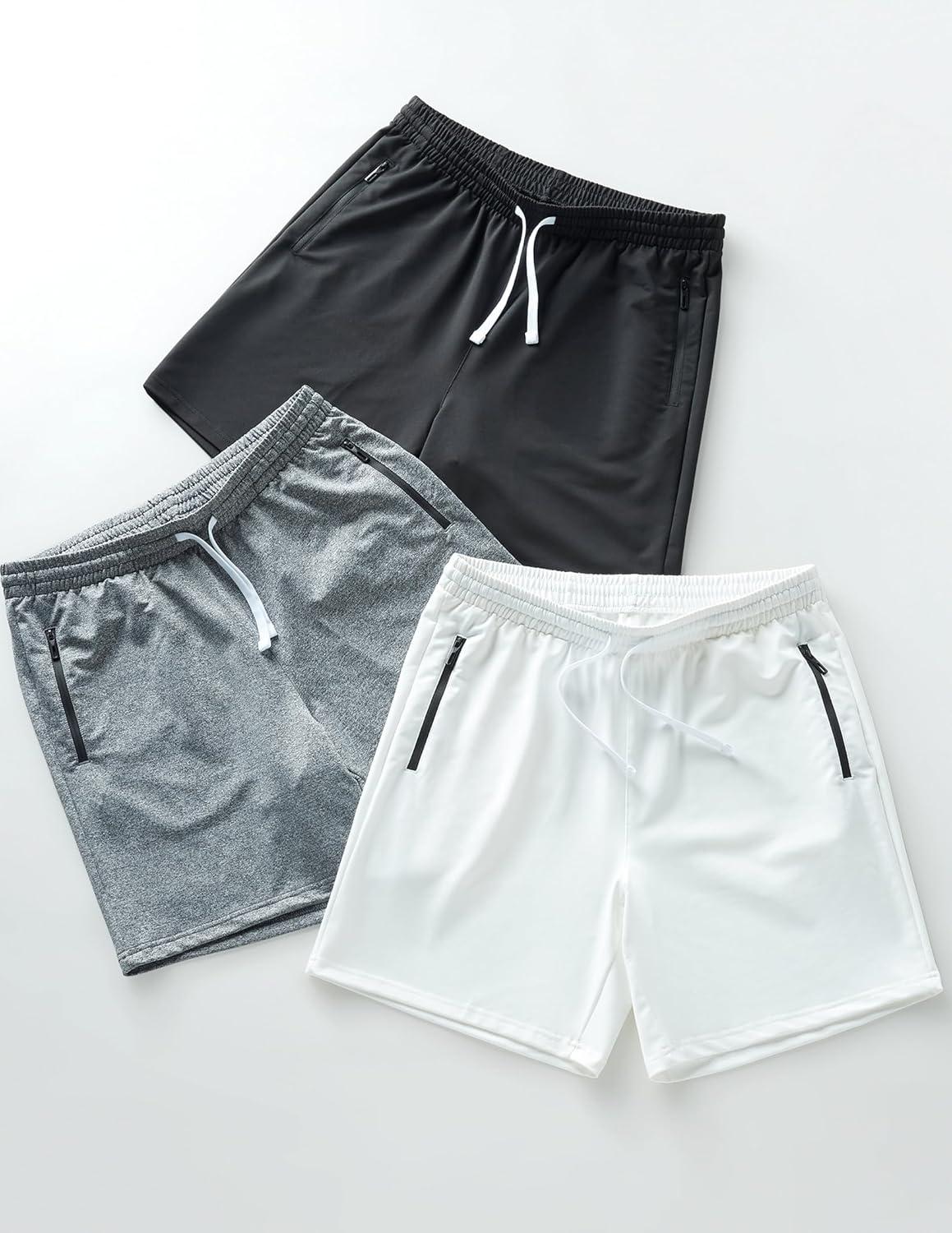 Liberty Imports 3 Pack Mens Sweat Shorts Athletic Casual Jogger Shorts with Zipper Pockets, Terry Performance Tech Activewear(Off White/Charcoal/Black)