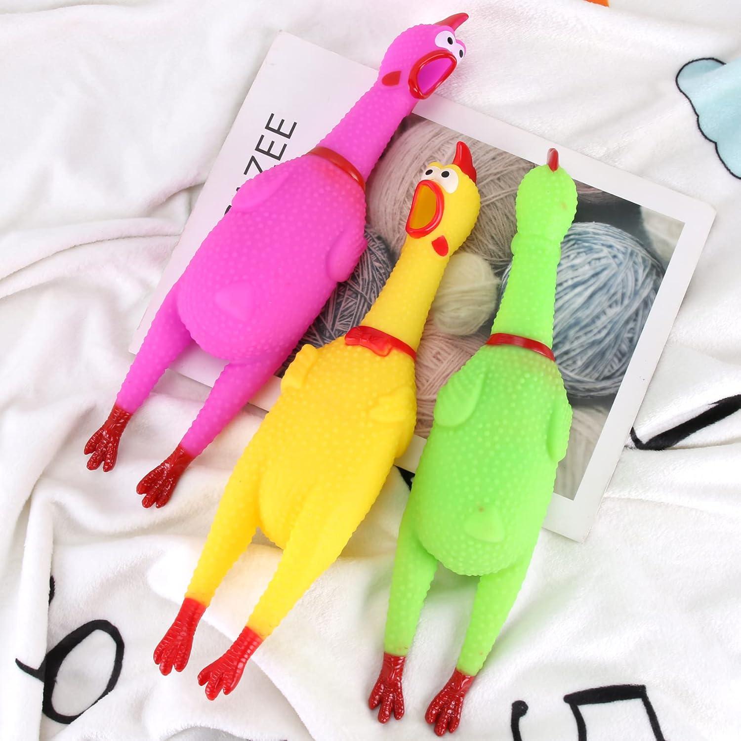 Liberty Imports 3 Pack: Rubber Chicken Toy, 14″ Screaming Squawking Practical Joke Prank Noisemaker, Novelty Gag Gifts Party Favor Toys