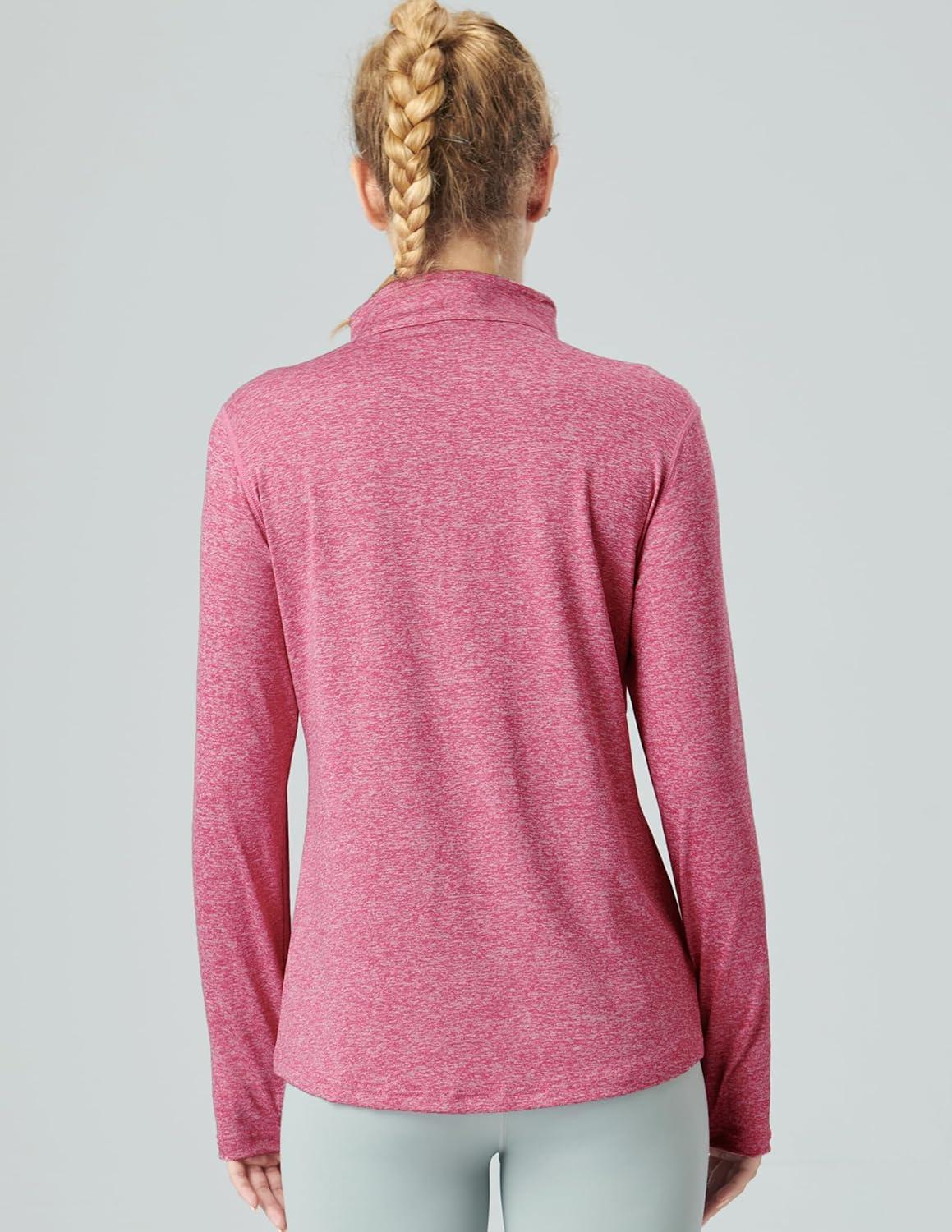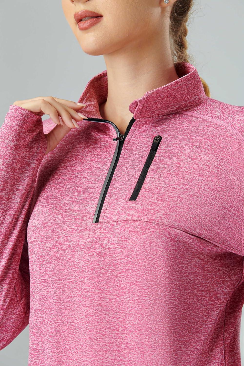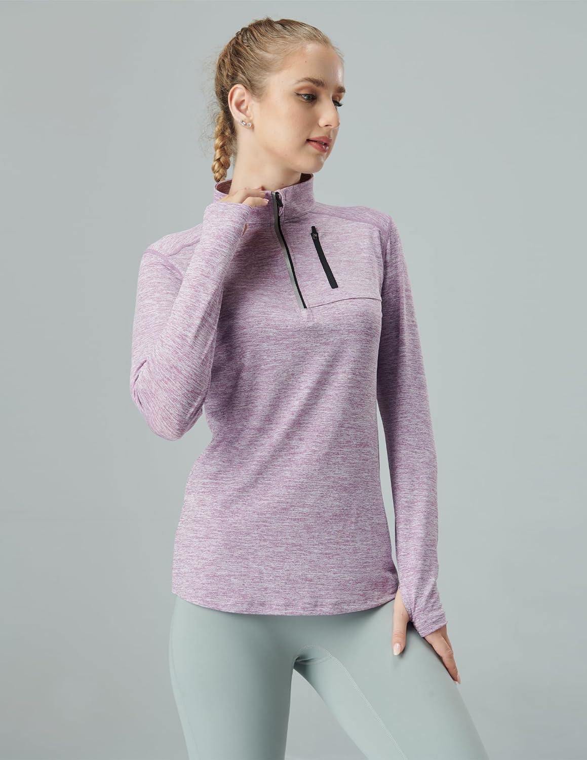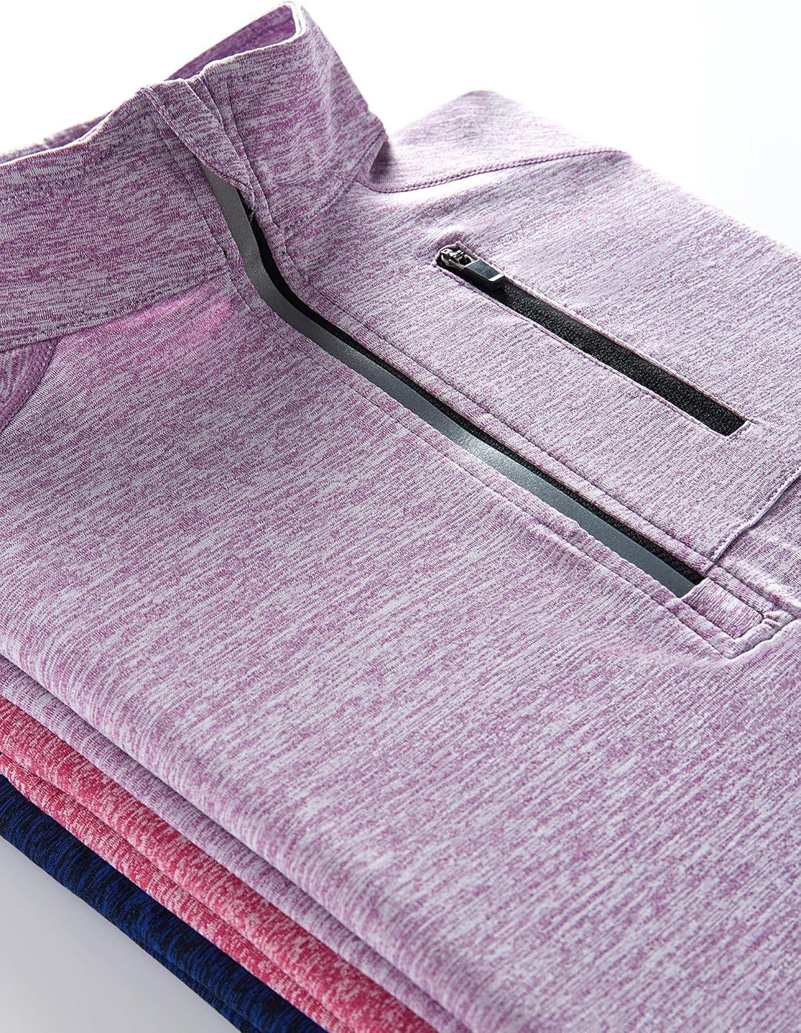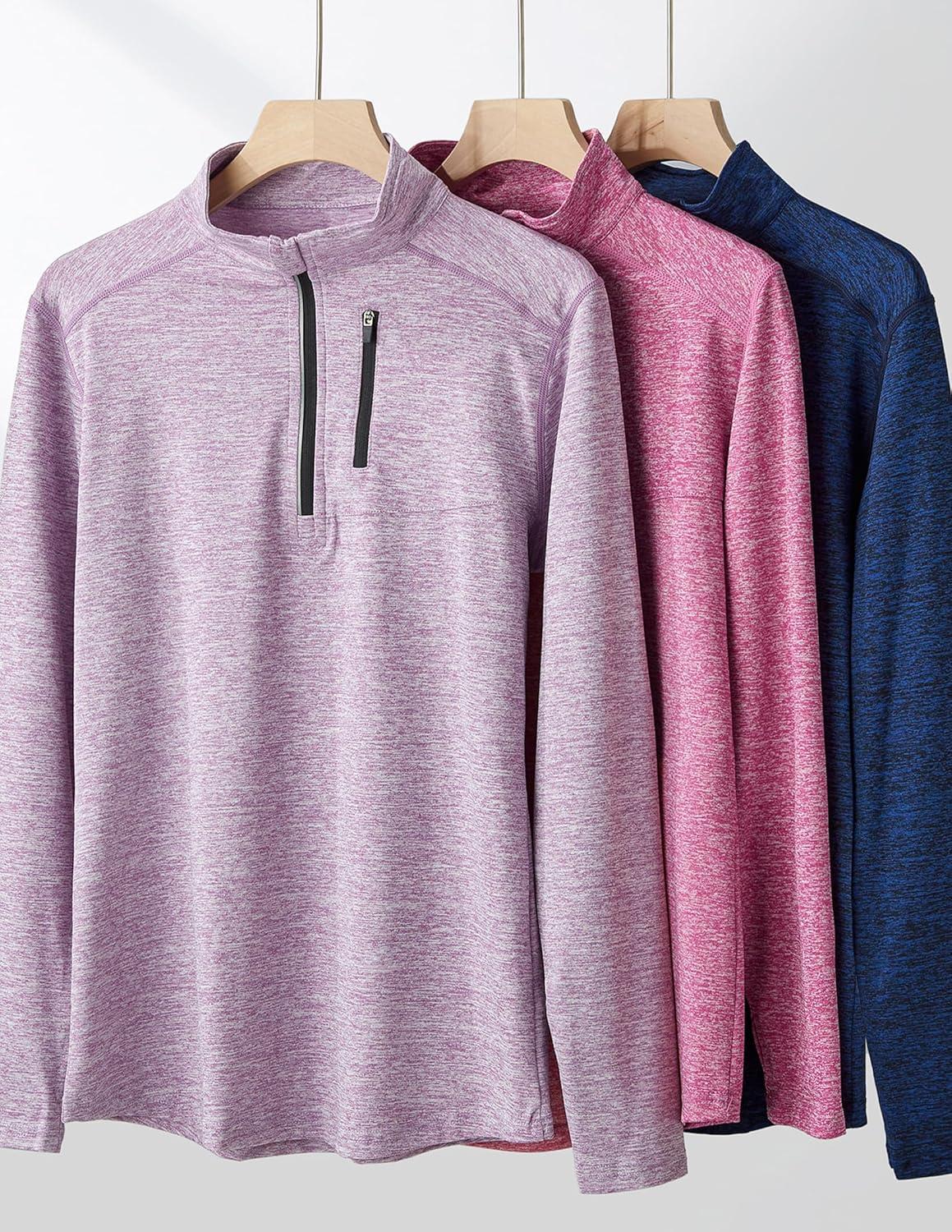 Liberty Imports 3 Pack: Women’s Quick Dry Long Sleeve Quarter Zip Pullover Workout Shirts with Thumb Holes and Pocket(Heather Lavender/Navy/Pink)