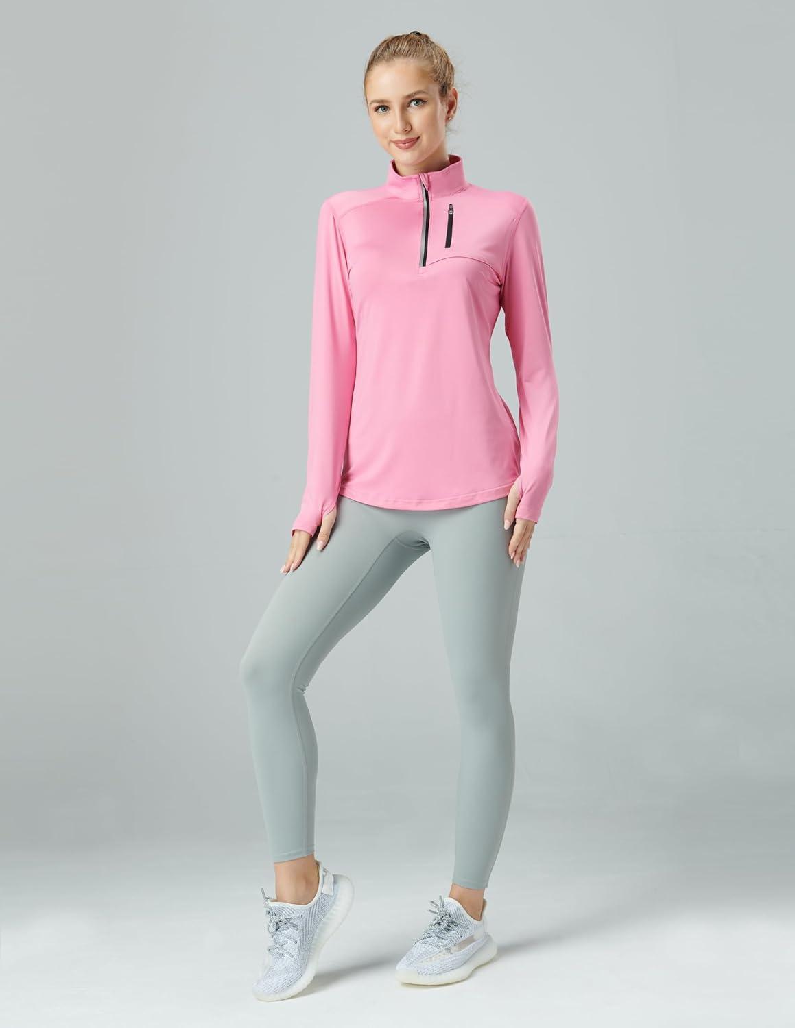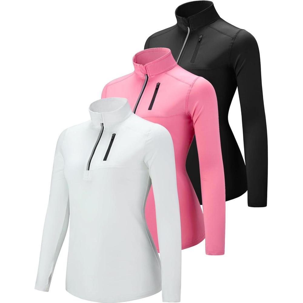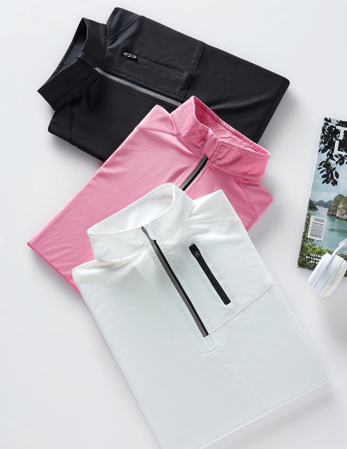 Liberty Imports 3 Pack: Women’s Quick Dry Long Sleeve Quarter Zip Pullover Workout Shirts with Thumb Holes and Pocket(Pink/Black/White)