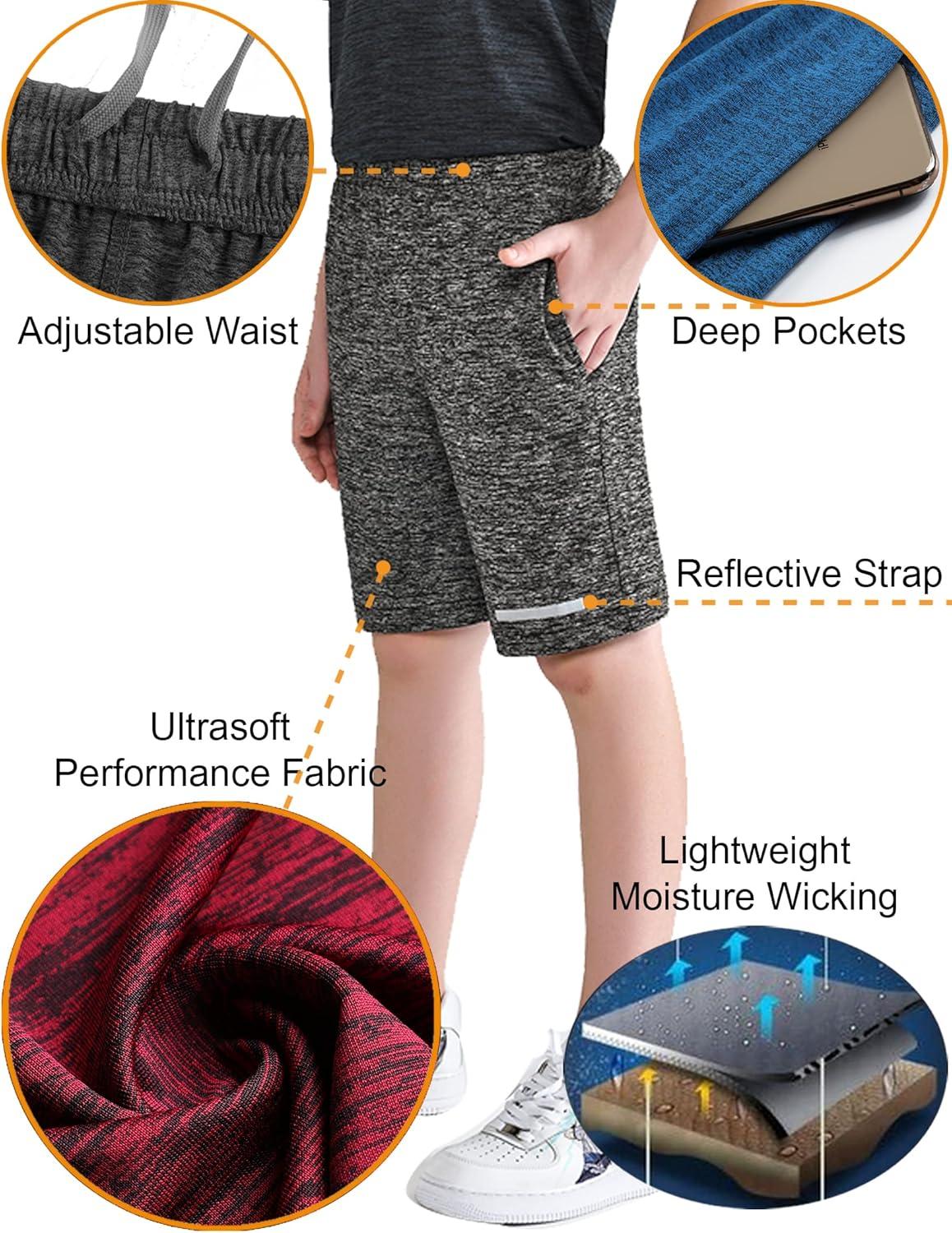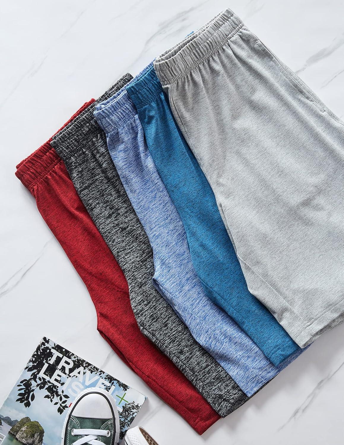 Liberty Imports 5 Pack Big Boys Youth Athletic Mesh Basketball Shorts with Pockets Quick Dry Activewear(Heather Charcoal/Light Gray/Red/Blues)