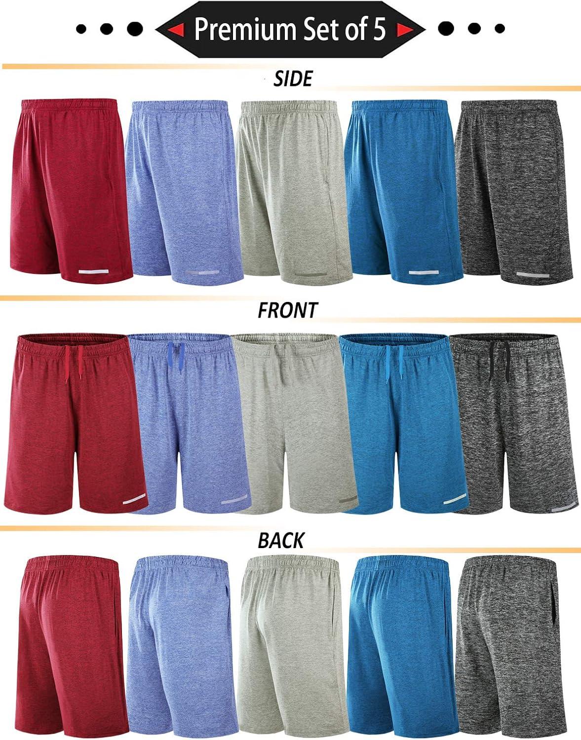 Liberty Imports 5 Pack Men’s Quick Dry Athletic Basketball Shorts 9″ Inseam with Pockets, Activewear for Workout Gym Running(Heather Charcoal/Light Gray/Red/Blues)