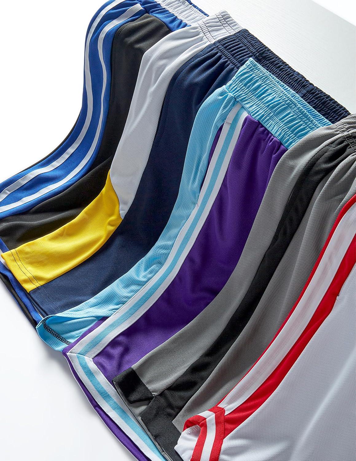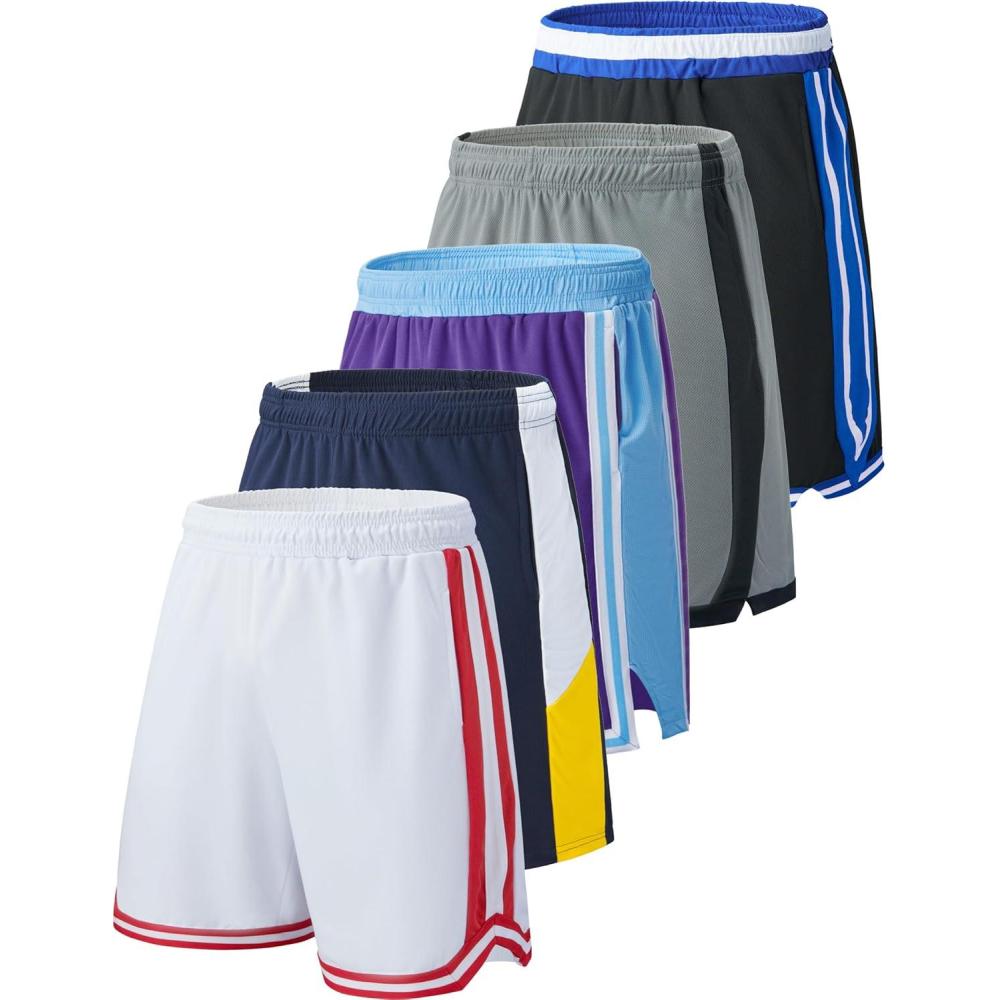 Liberty Imports 5 Pack Men’s Quick Dry Athletic Basketball Shorts 9″ Inseam with Pockets, Activewear for Workout Gym Running(White/Purple/Black/Navy/Gray)