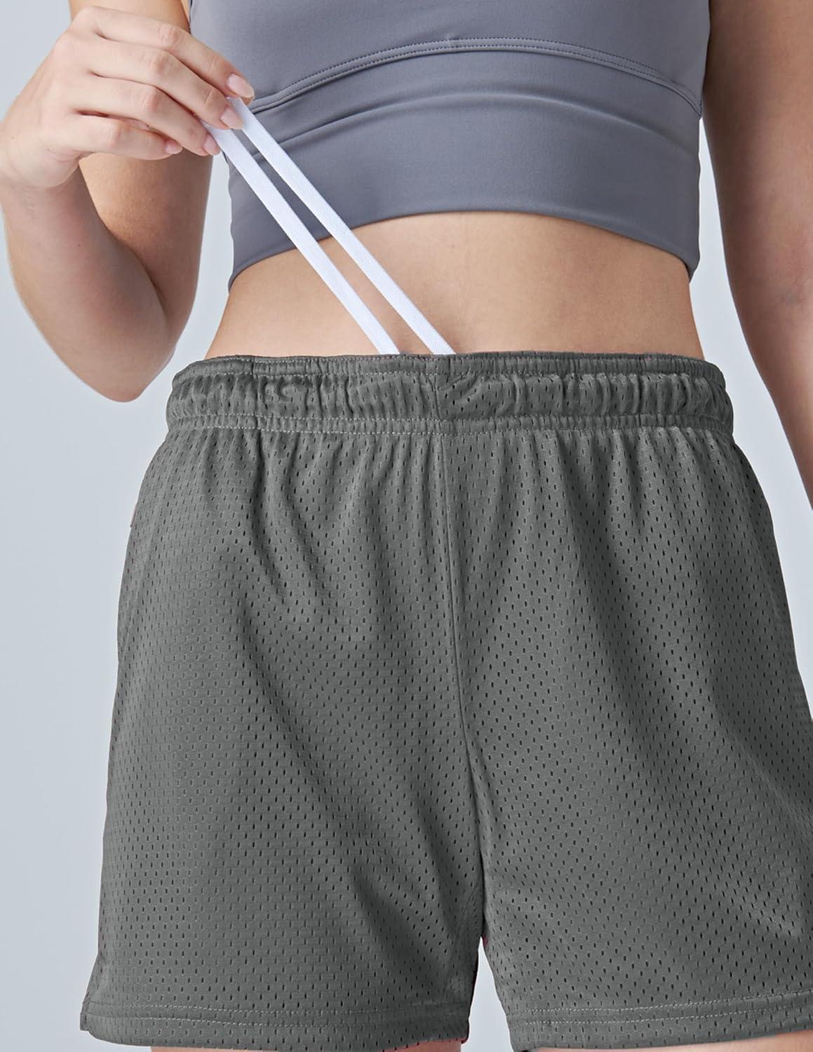 Liberty Imports 5-Pack Women’s Athletic Mesh Shorts 5″ Inseam, Ladies Loose Pull-On Shorts with Zipper Pockets(Light Pink/Baby Blue/Crimson/Teal/Charcoal)
