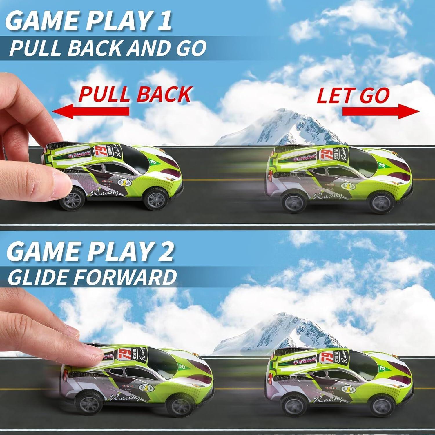 Easy to Play: No batteries needed. Each 1:64 scale racing car features pull-back motion, just pull back and release for high-speed fun, easy for boys and girls to use