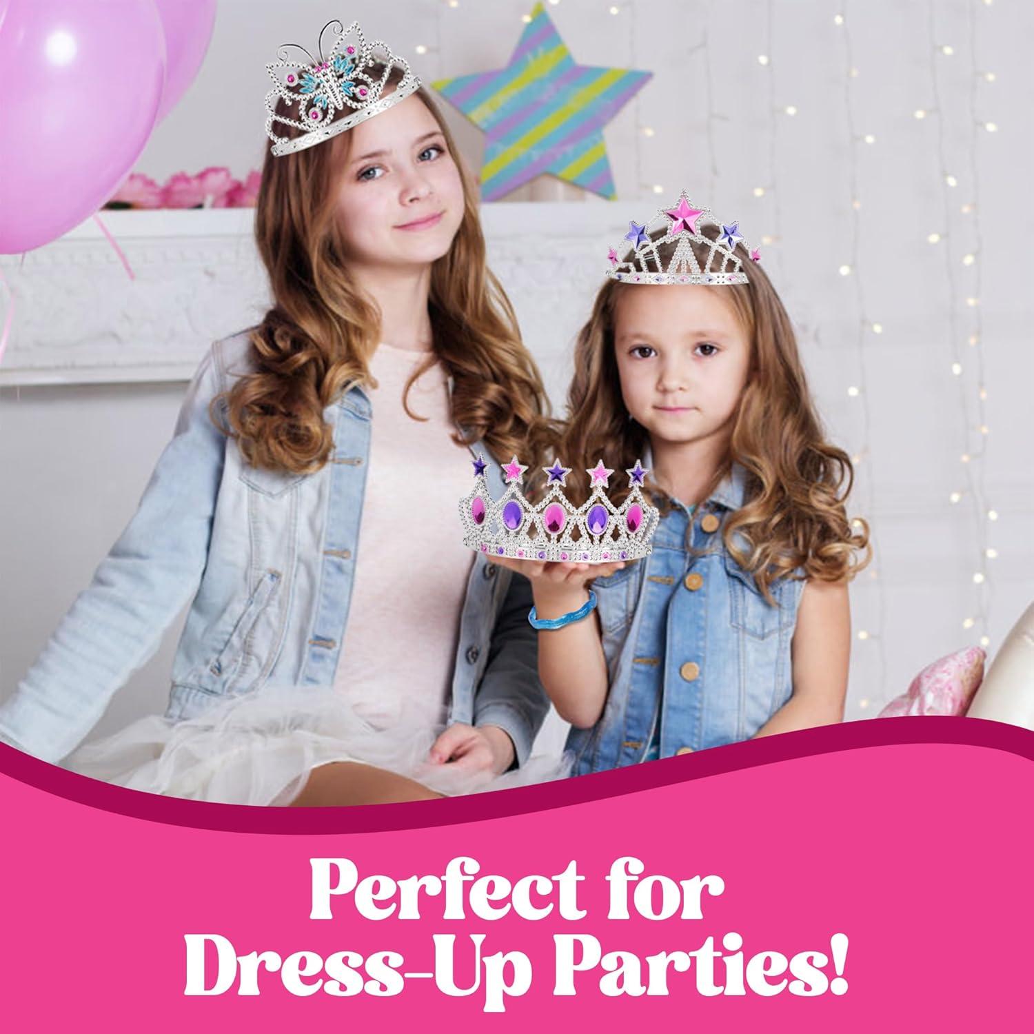 Kid Friendly Design: With 5″ wide tiaras and 11″ long star wands, this set is made from durable, non-toxic plastic, ensuring safe and enchanting moments for children ages 3 and up!