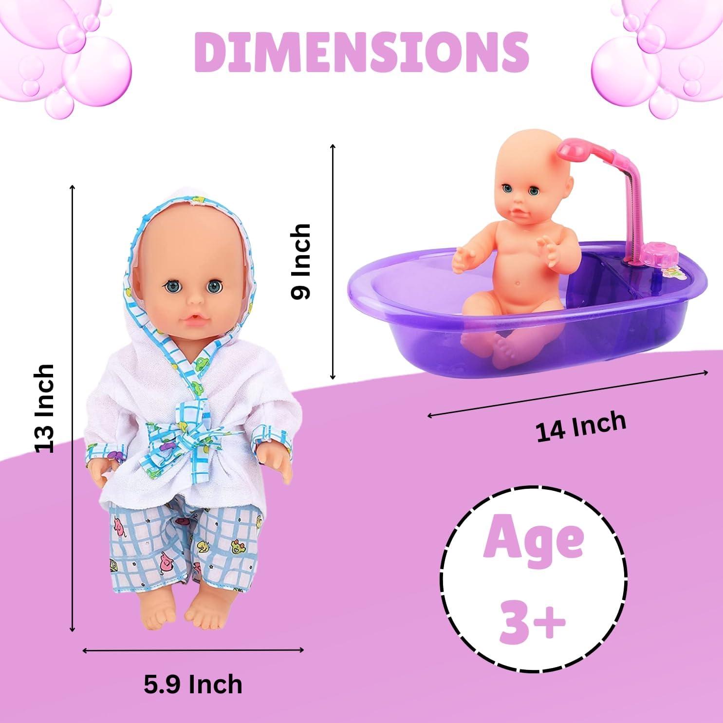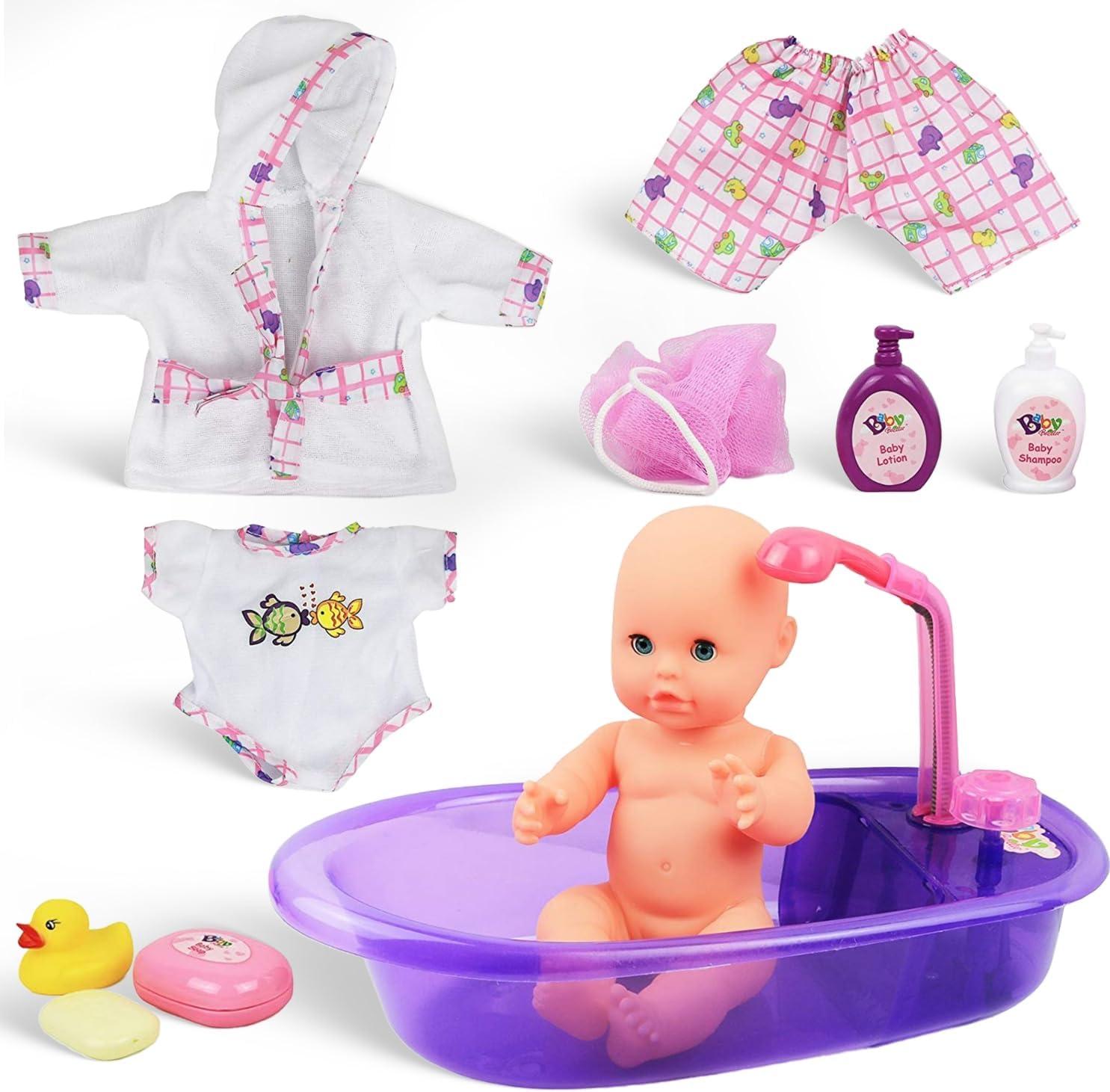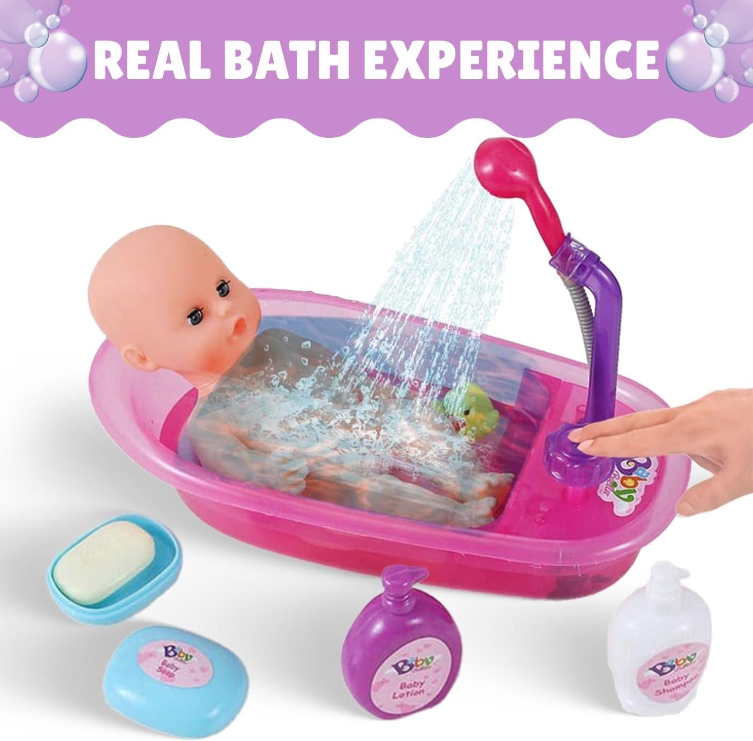 Liberty Imports Baby Bath Toys 13-Inch Little Newborn Doll Bath Set – Real Working Bathtub with Detachable Shower Spray and Accessories for Kids Pretend Play