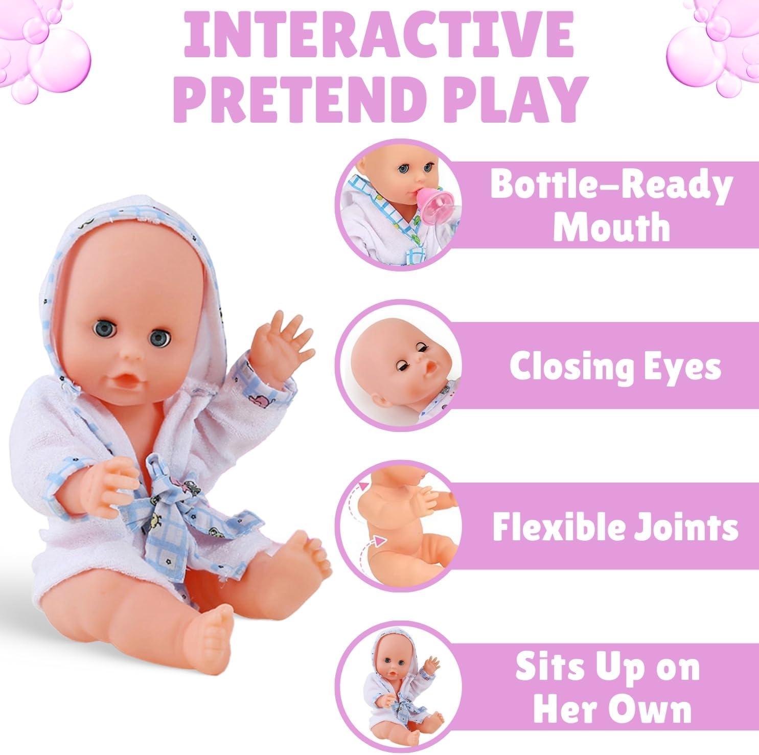 Pretend play: Enhances cognitive and imaginative skills as children engage in pretend play and care for their baby doll during bath time