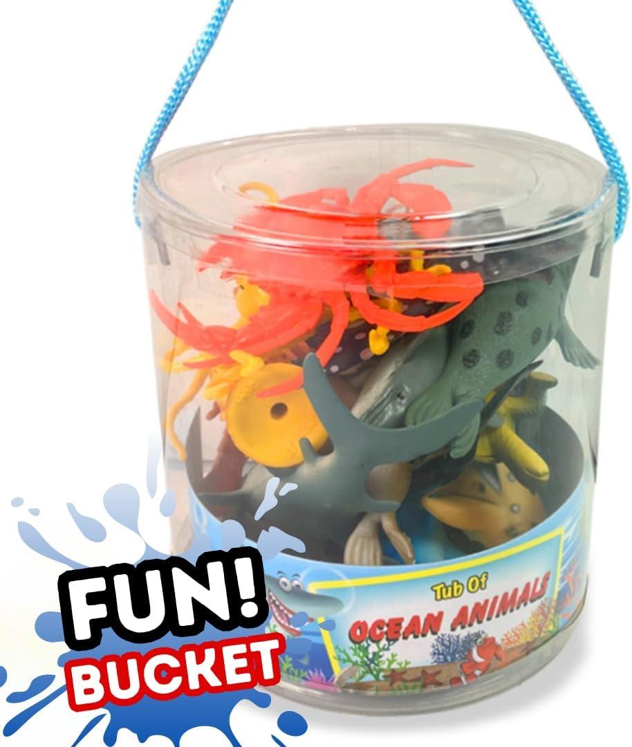 Storage Bucket: Each set comes in a reusable storage tub, keeping the sea creatures organized and ready for action; perfect for bathtime fun, pool adventures, or themed parties—let the aquatic excitement begin!