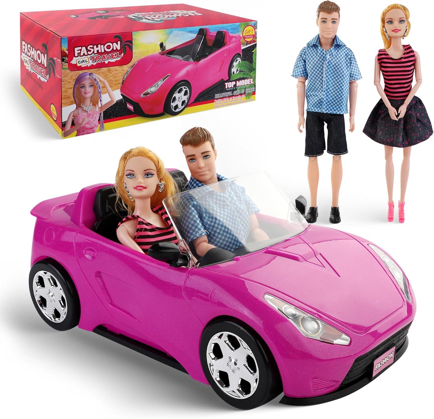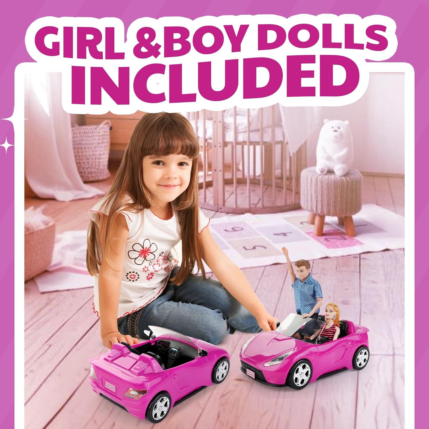 Gear up for hours of fun with this doll-sized pink convertible car—a perfect toy vehicle for kids who love dolls and imaginative play. Designed as a 2-seater vehicle, it’s ideal for fashion dolls, including Barbie and similar-sized dolls. With working seat belts and rolling wheels, this Barbie-compatible car makes playtime more engaging by adding a touch of realism to every road trip and adventure. This Barbie car set includes two dolls, so kids can start playing right away without the need to buy extras. It’s the perfect toy for children who enjoy doll dream house adventures or expanding their Barbie dream car collection. Whether driving to the dollhouse or setting off on a road trip, this convertible car for dolls offers hours of creative storytelling opportunities. The lightweight and durable design makes this toy vehicle for dolls easy for kids to carry and play with indoors or outdoors. Whether it’s part of a birthday gift, holiday surprise, or an addition to a Barbie dream house playset, this doll car toy delivers fun, function, and style. Add this Barbie-compatible convertible car to your child's toy collection and watch their imagination soar!