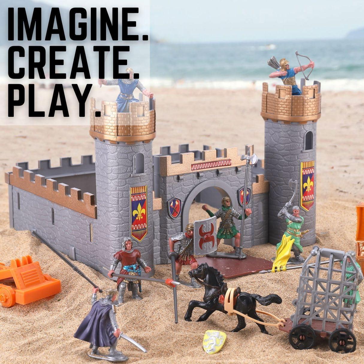 Medieval Toy Castle: Build your own kingdom with this castle playset, featuring knight figurines, a working catapult, a horse, a treasure chest, and more