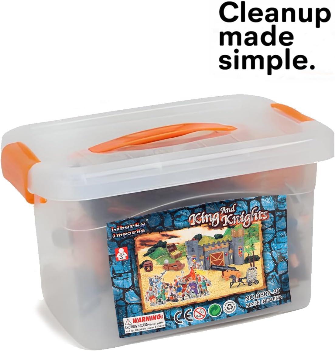 Liberty Imports Medieval Castle Kingdom Knights Action Figure Toy Army Playset with Castle, Figurines, Catapult, and Acessories Kids Playset in Storage Bucket