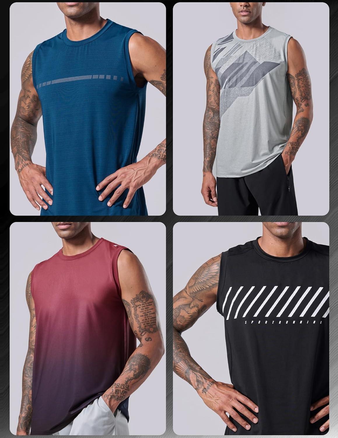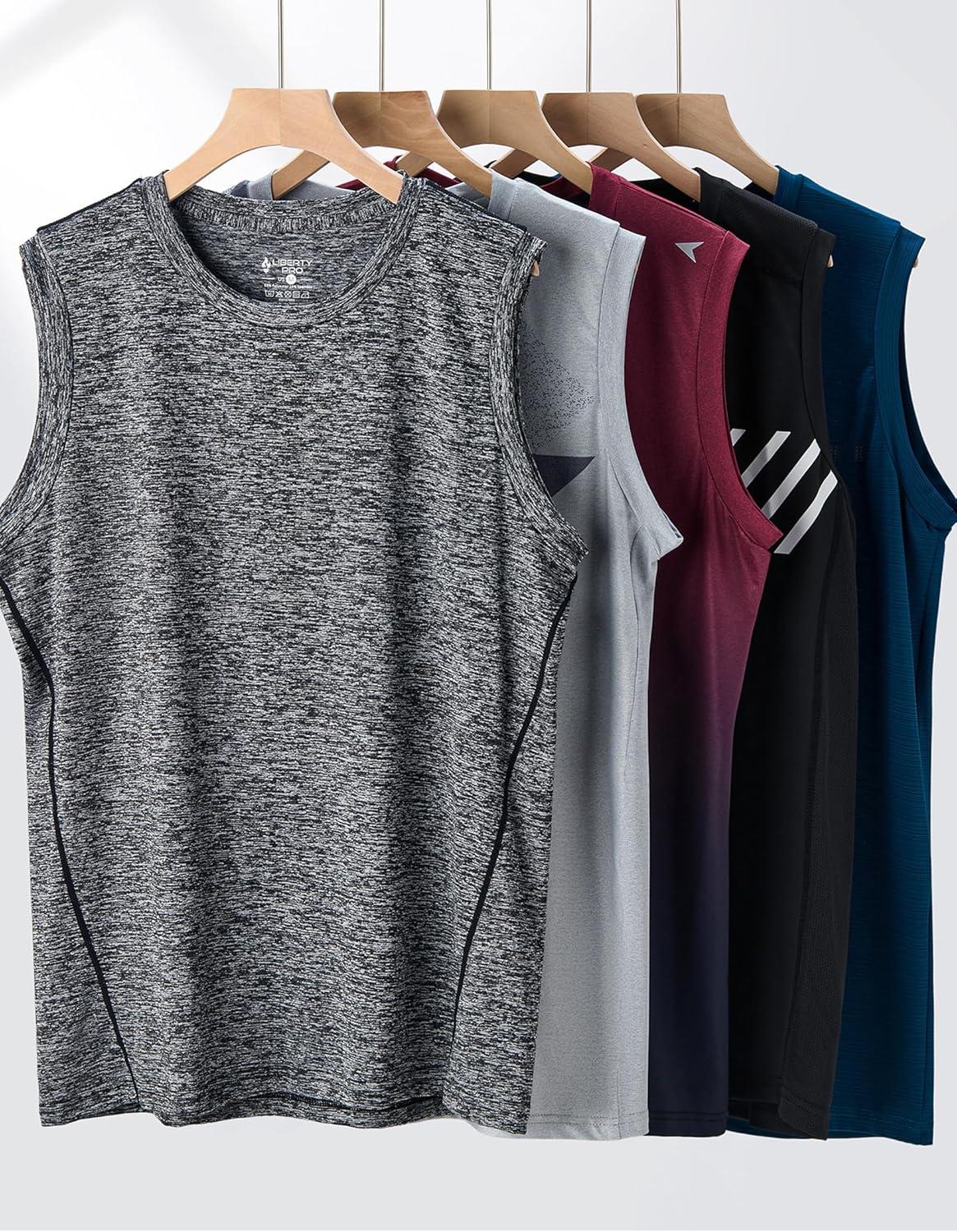 Liberty Imports Pack of 5 Men’s Stretch Cool Dry Muscle Tank Tops Athletic Crewneck Sleeveless Workout Shirts(Blue/Black/Charcoal/Light Gray/Gradient Red)