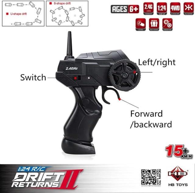 2.4GHz Remote Control Transmitter allows you to race against multiple cars at the same time and without interference. Enjoy real racing drift experience for kids