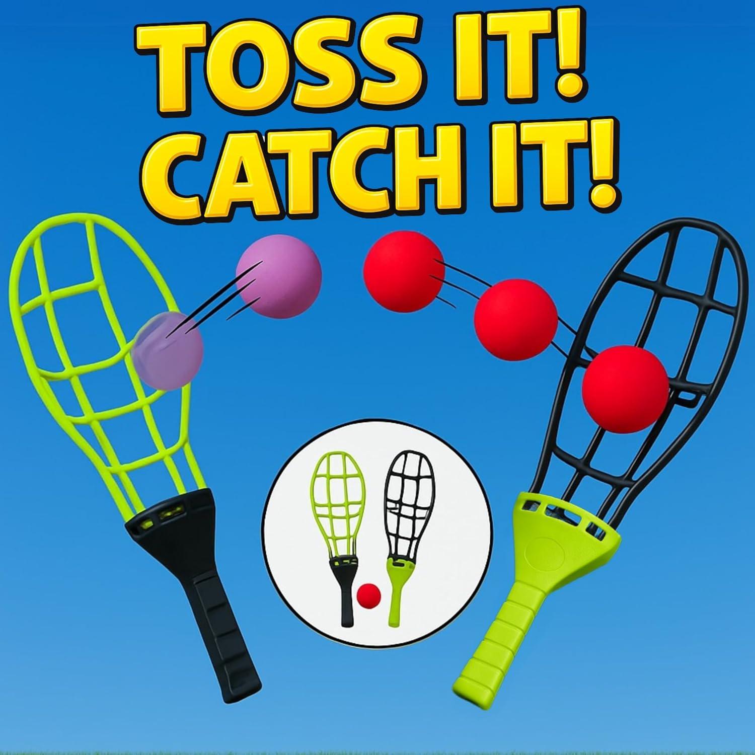 Classic Backyard Game: Toss and Catch Ball Trackball Toy Game – Play outdoors with jumbo rackets and lightweight plastic balls to elevate your family’s outdoor fun!