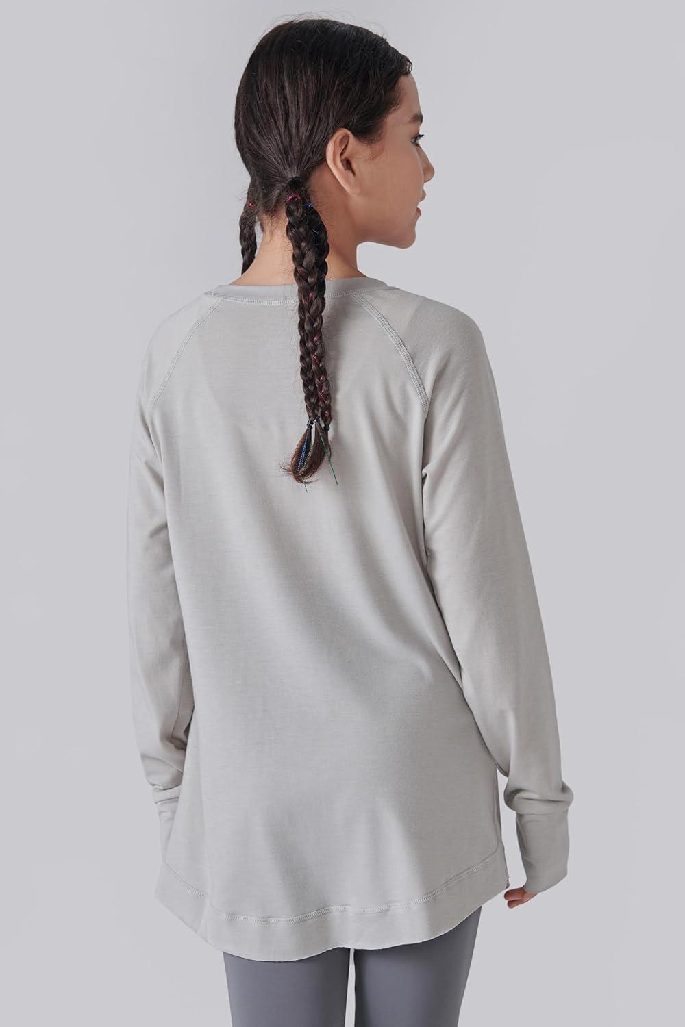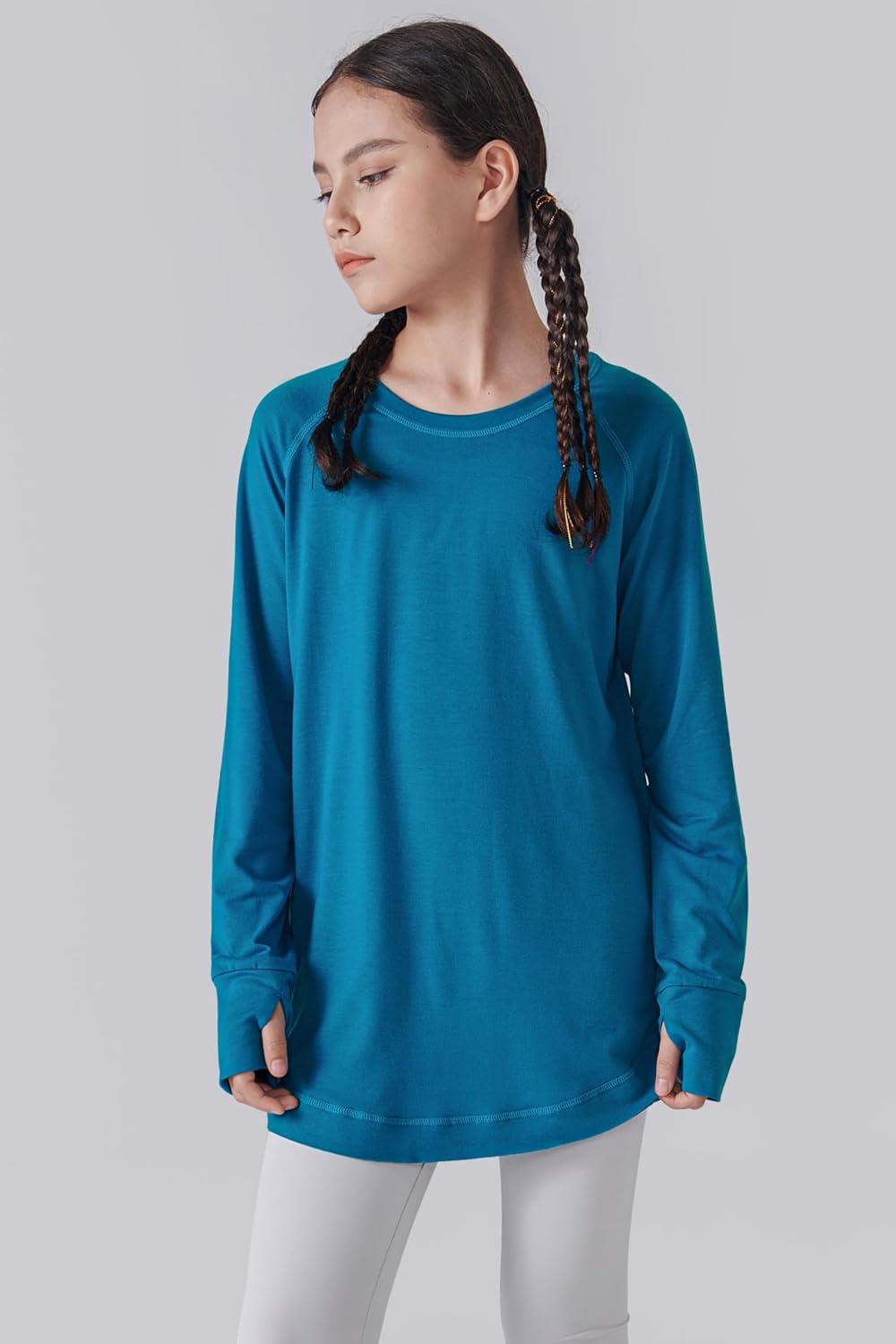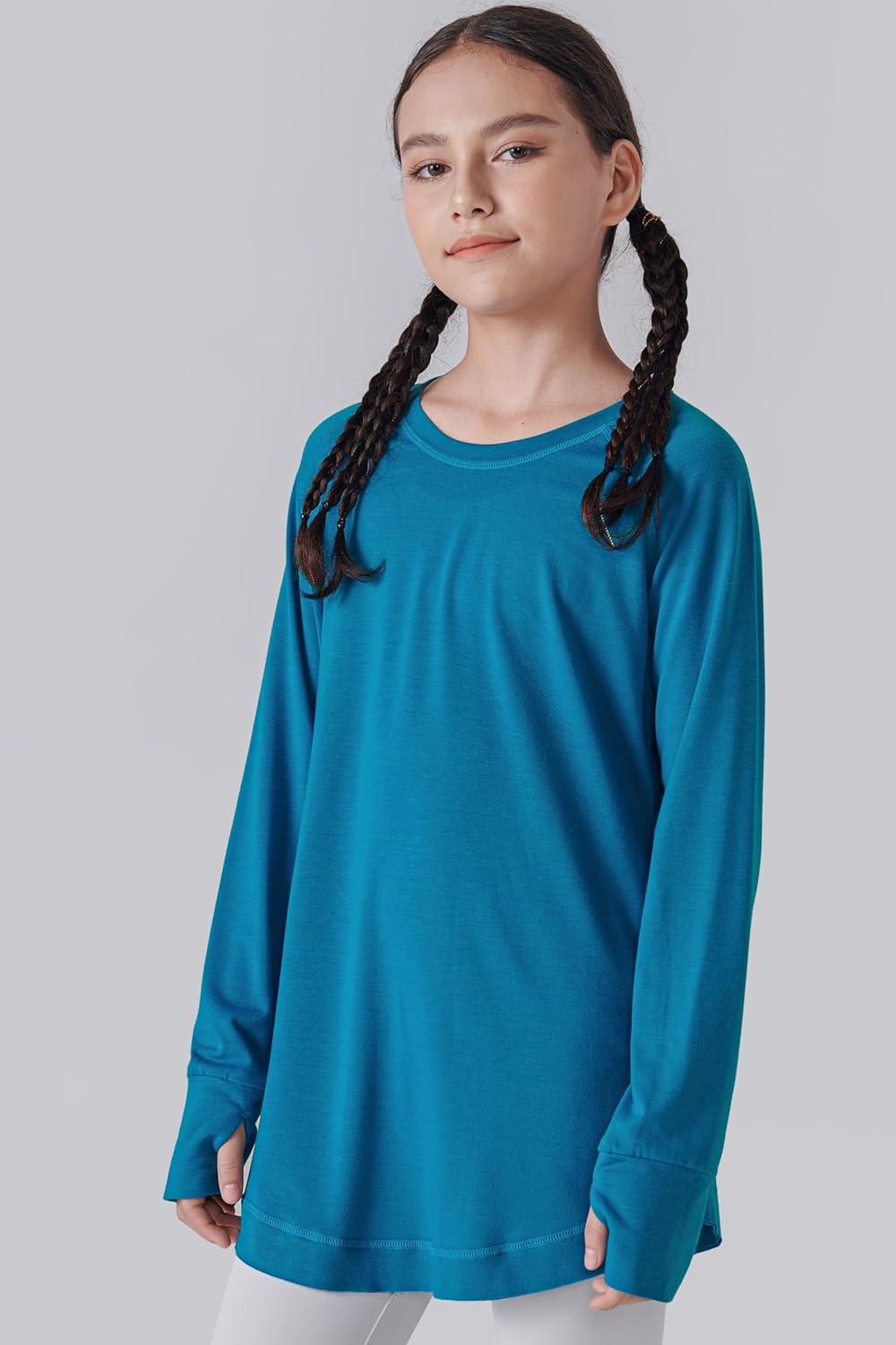 Liberty Pro 2-Pack Girls’ Loose Fit Long Sleeve Tunic Tops with Pockets and Thumb Holes, Casual T Shirts for Tween Kids(Teal Blue/Gray)