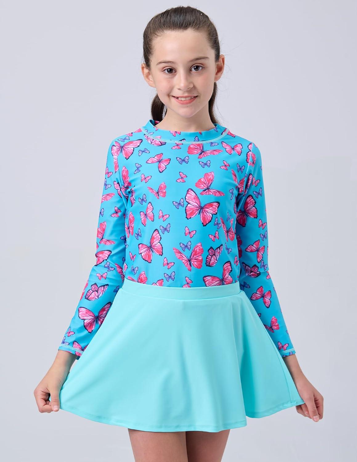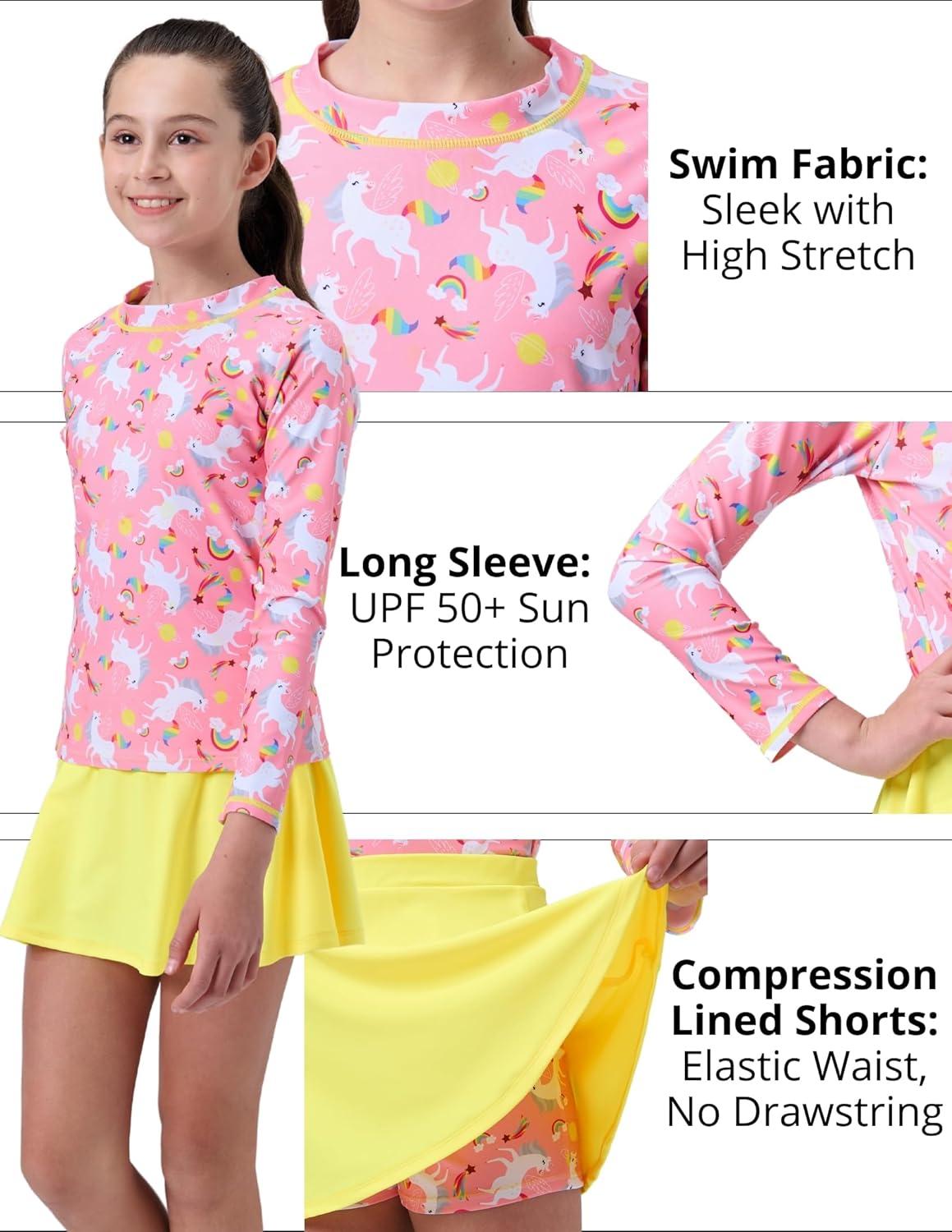 Liberty Pro 2 Pack: Girls Rash Guard Two Piece Bathing Suit Long Sleeve Swimsuit – Toddler Swimwear with Skirts Shorts 3T-12Y(Set 3)