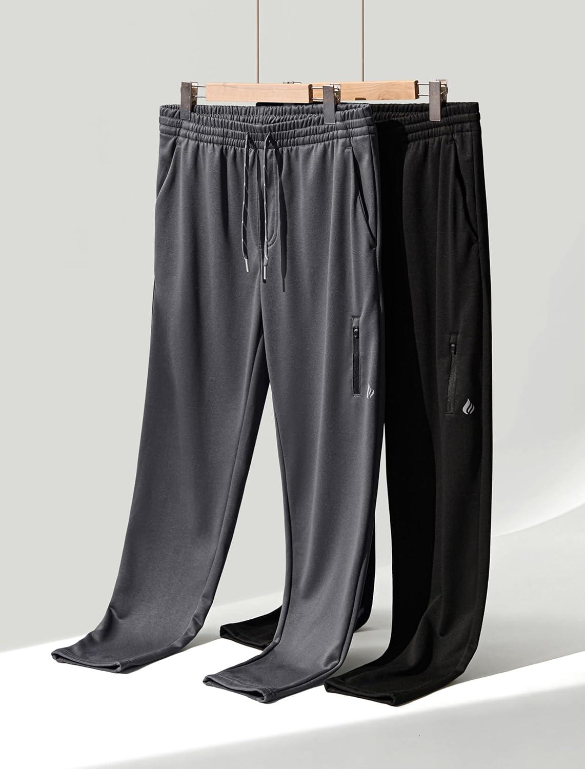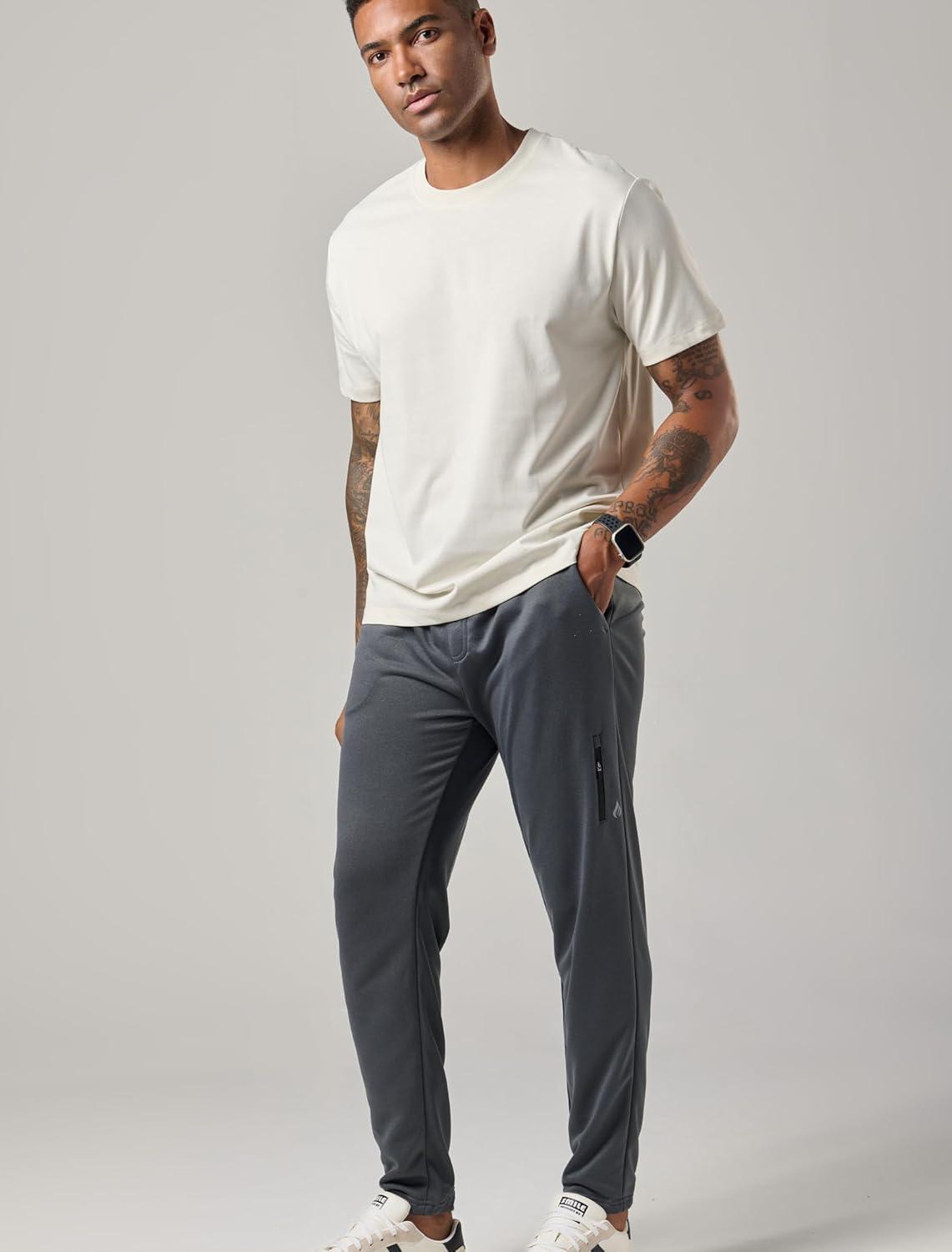 Liberty Pro 2 Pack: Men’s Joggers for Shorter Men – 29″ Inseam Sweatpants with Zip Pockets, Regular Fit Tapered Workout Pants(Charcoal/Black)