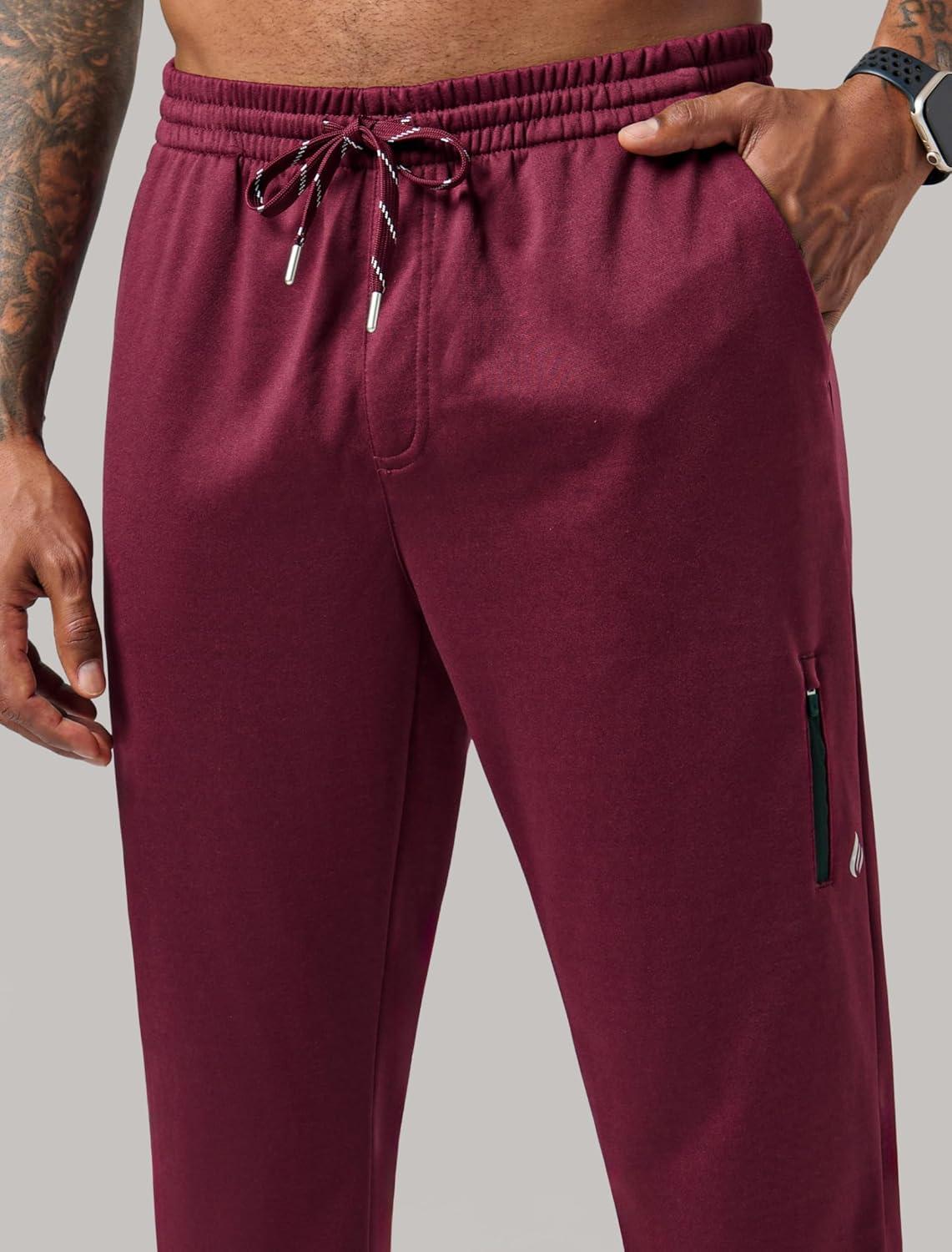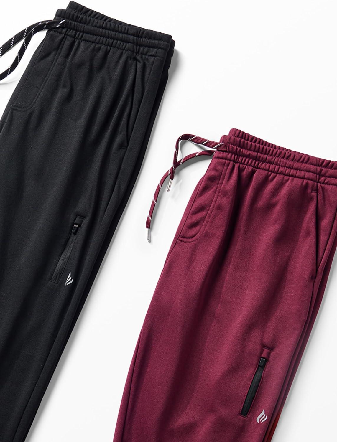 Liberty Pro 2 Pack: Men’s Joggers for Shorter Men – 29″ Inseam Sweatpants with Zip Pockets, Regular Fit Tapered Workout Pants(Maroon/Black)