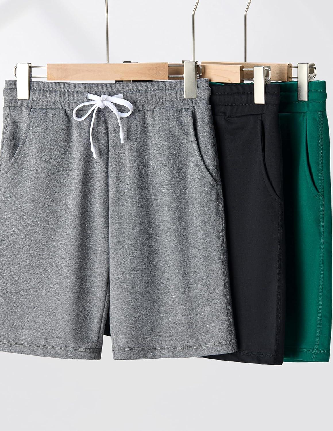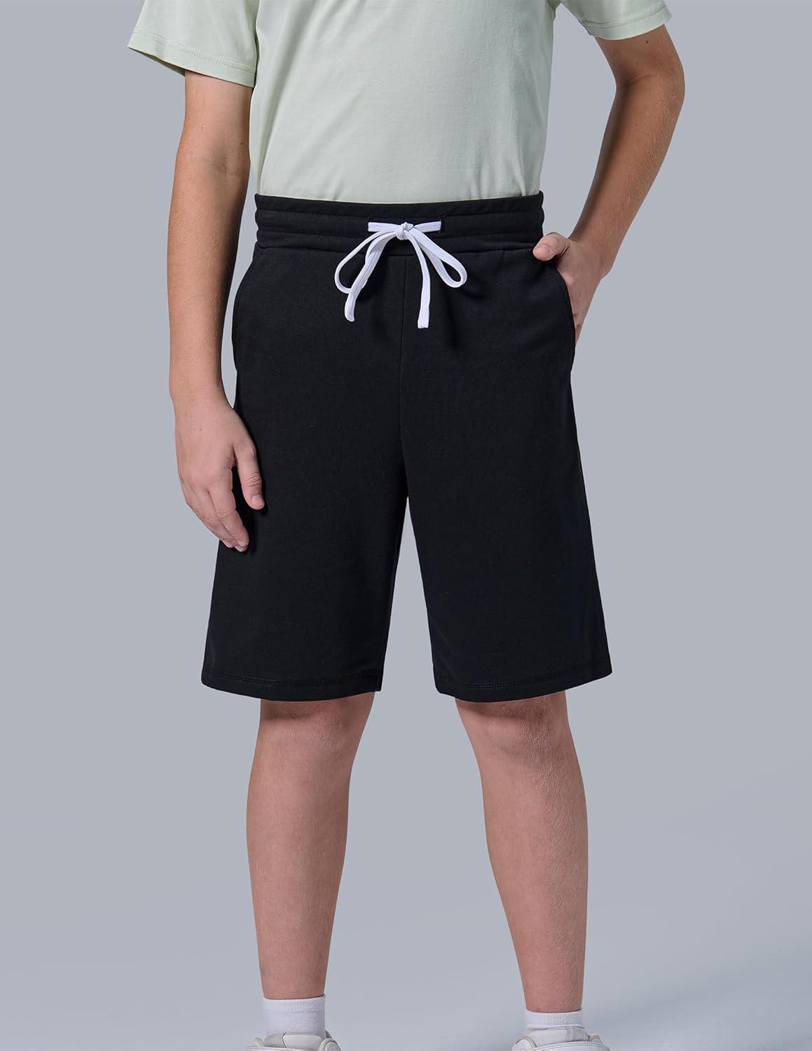 Liberty Pro 3 Pack Boys’ Pull On Jogger Shorts Youth Kids Casual Terry Sweat Shorts with Pockets Drawstring(Black/Green/Dark Gray)