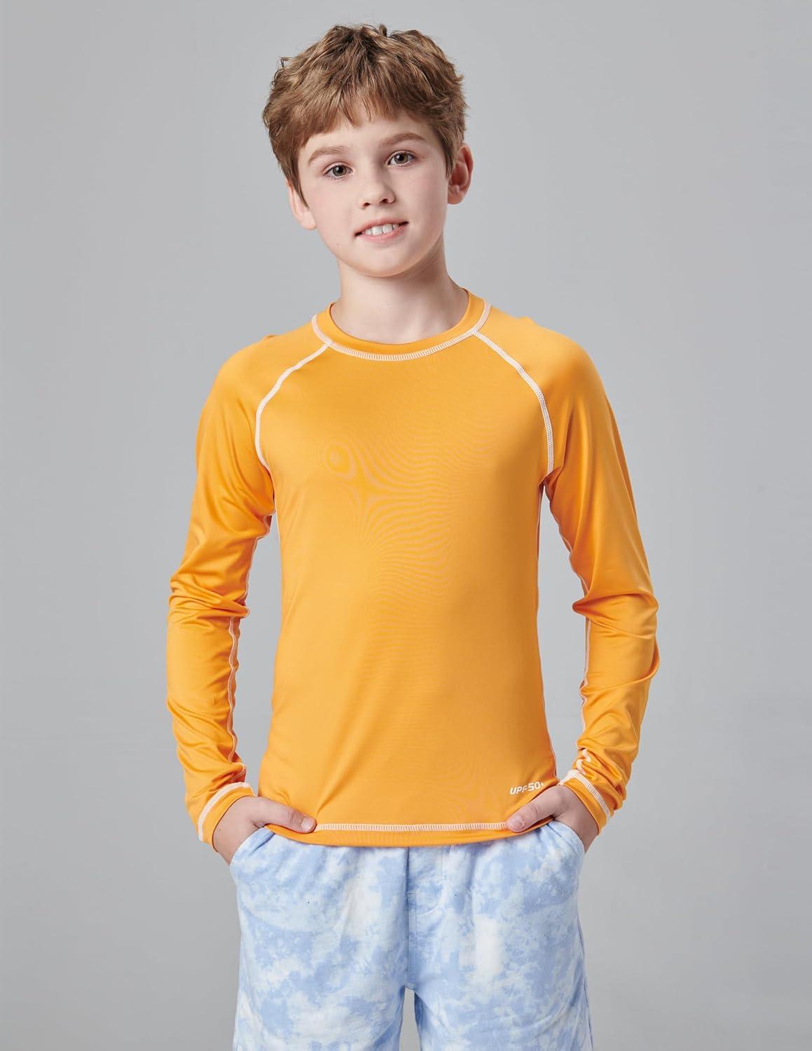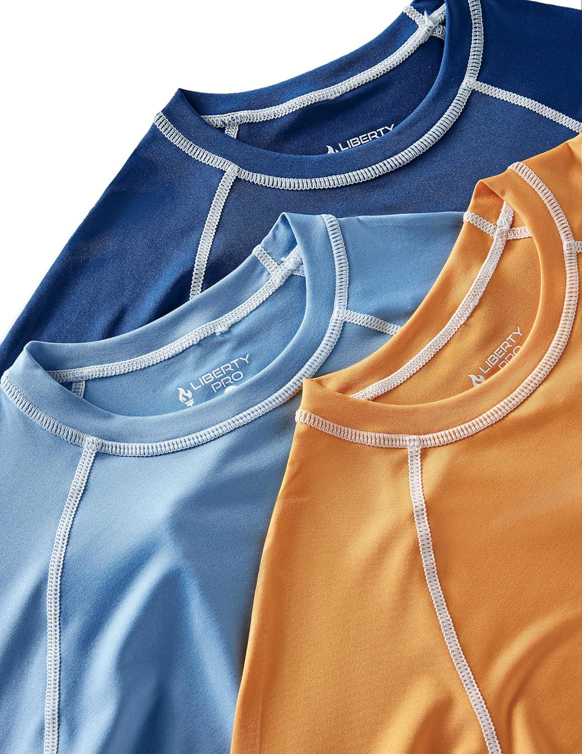 Liberty Pro 3 Pack Boys’ UPF 50+ Rash Guard Long Sleeve Swim Shirts, Quick Dry UV Protection Swimwear for Kids(Orange/Light Blue/Midnight Navy)