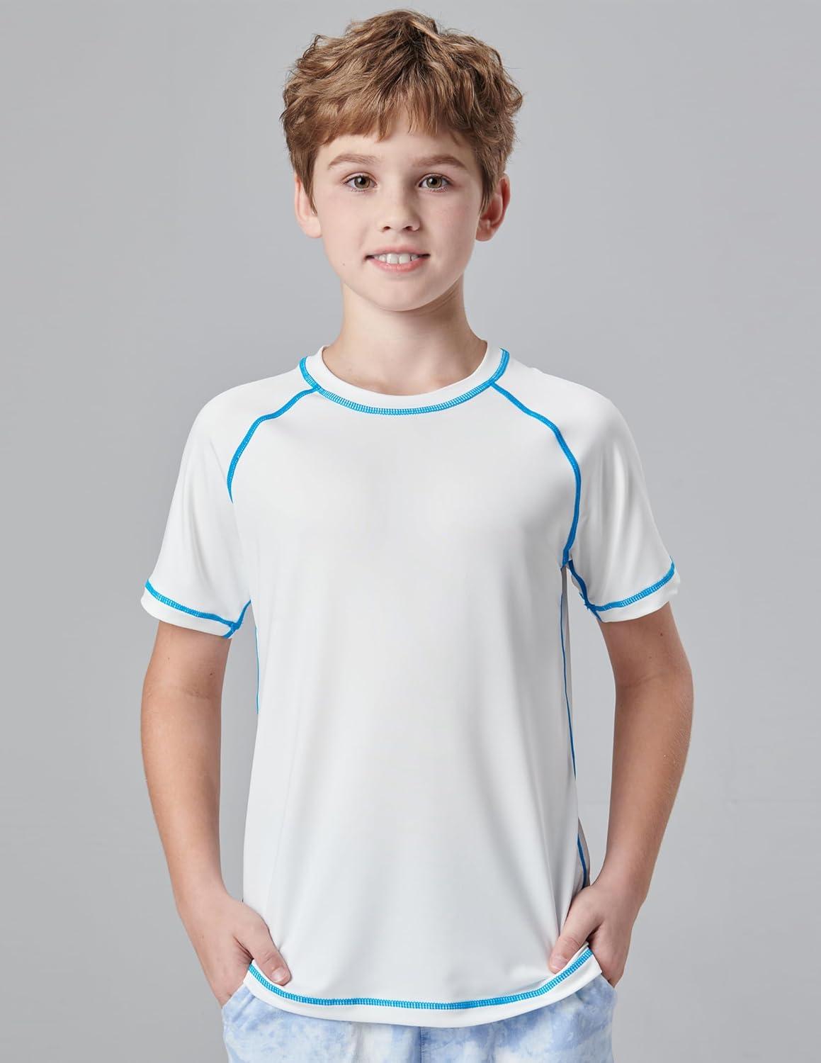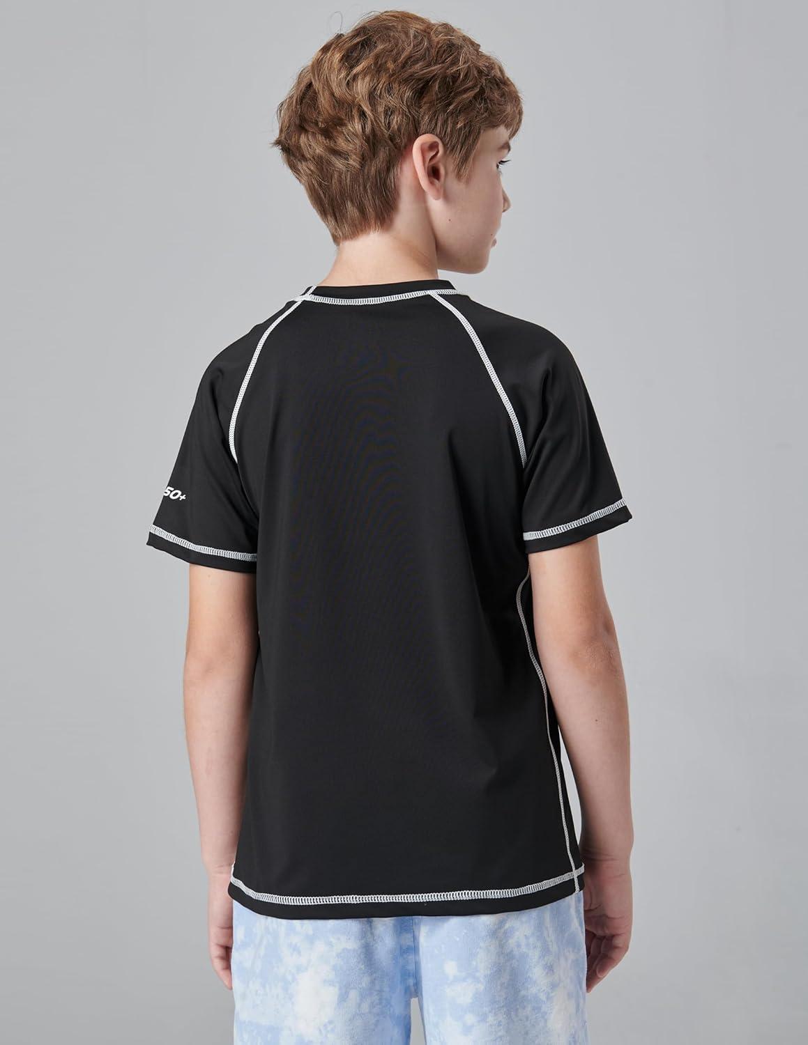 Liberty Pro 3 Pack Boys’ UPF 50+ Rash Guard Short Sleeve Swim Shirts, Quick Dry UV Protection Swimwear for Kids(Aqua/Black/White)