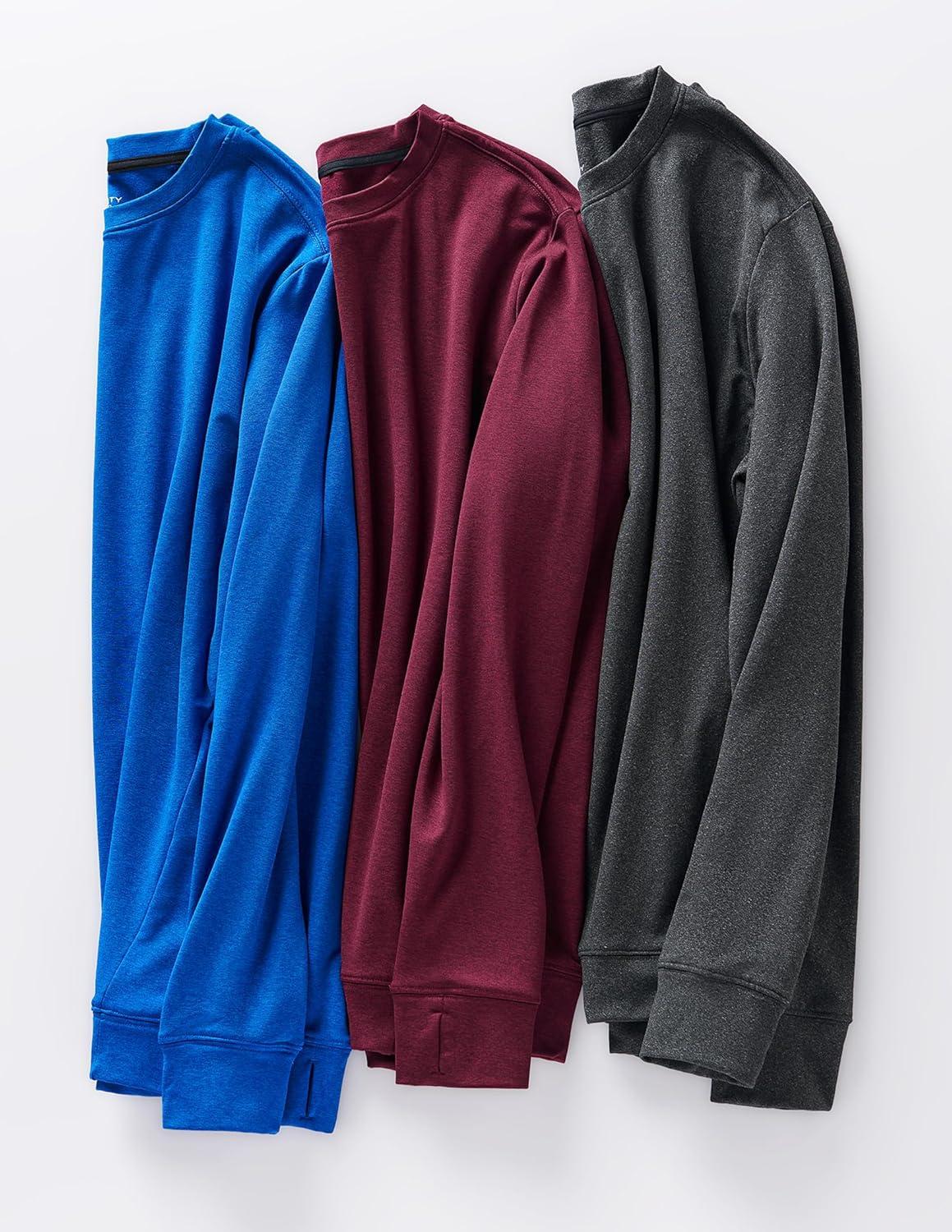 Liberty Pro 3-Pack Thermal Fleece Active Long Sleeve Shirts for Men, Athletic Crewneck Pullover Sweatshirts(Blue/Burgundy/Charcoal)