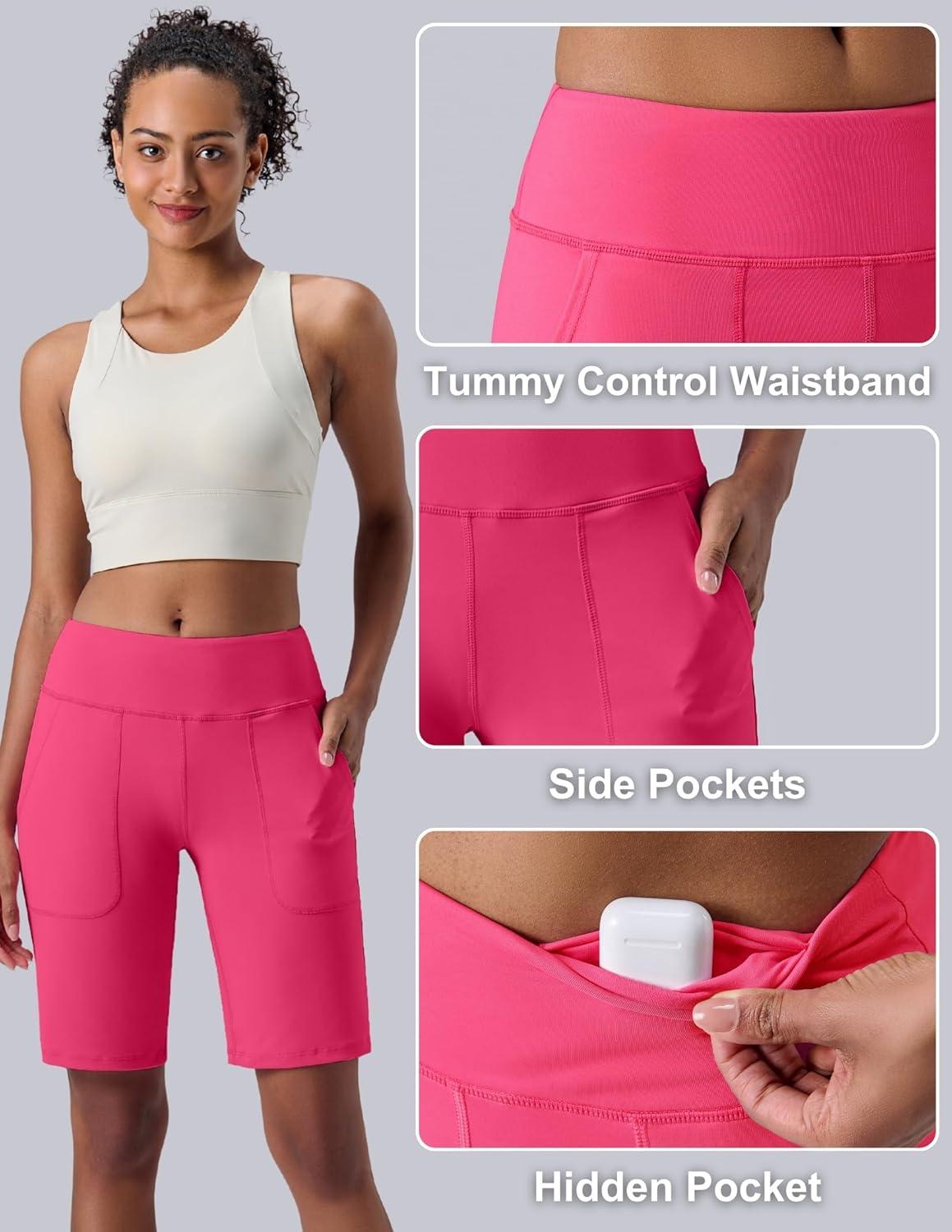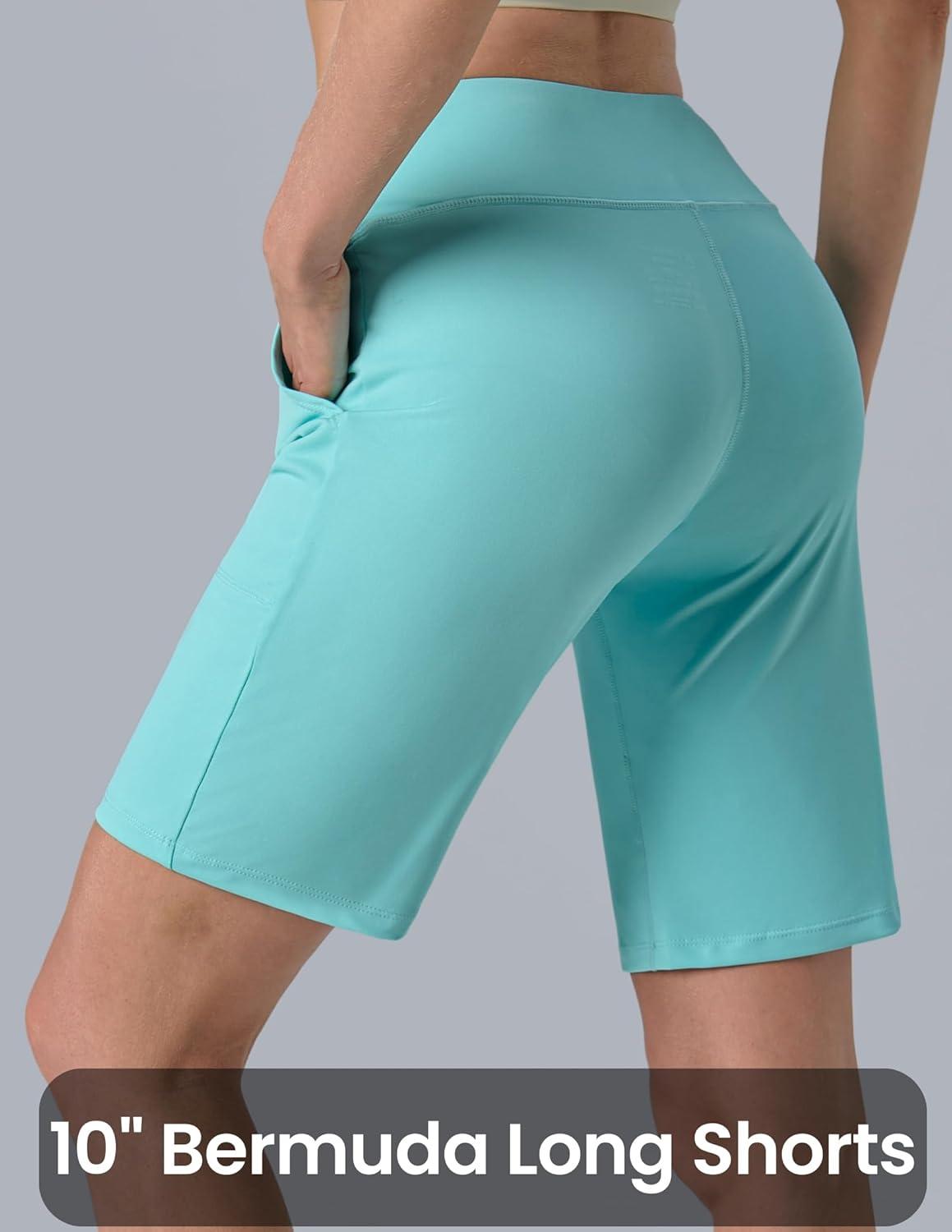 Liberty Pro 3 Pack Women’s 10” Bermuda Shorts with Pockets, Plus Size Quick Dry Casual Long Shorts Knee-Length Tummy Control(Aqua/Off White/Hot Pink)
