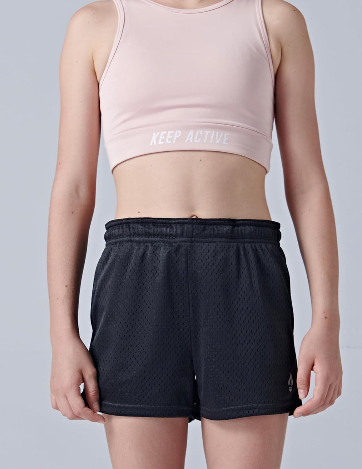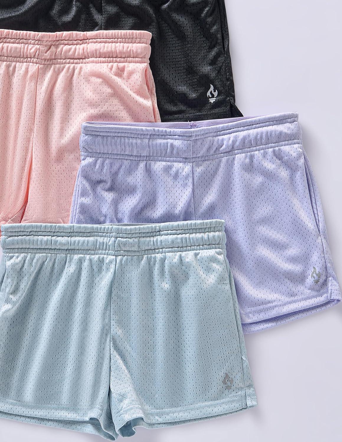 Liberty Pro 4 Pack: Girls Airy Mesh Active Athletic Sport Shorts, Youth Running Performance Clothes with Pockets(Black/Pink/Blue/Lilac)