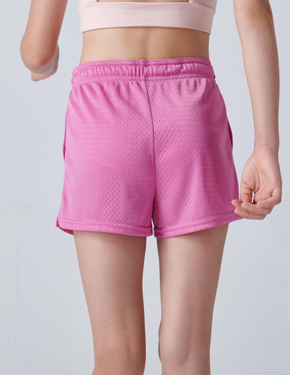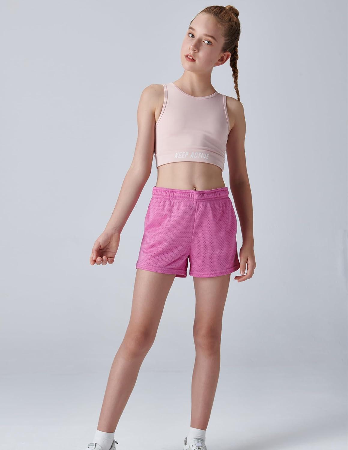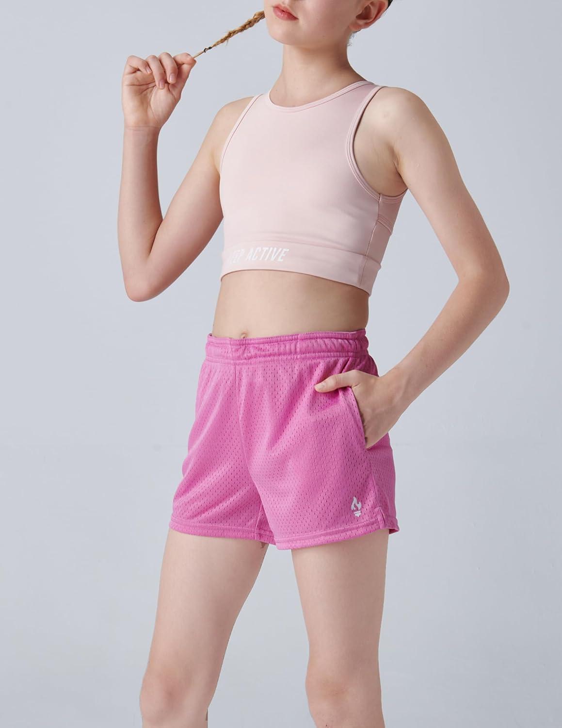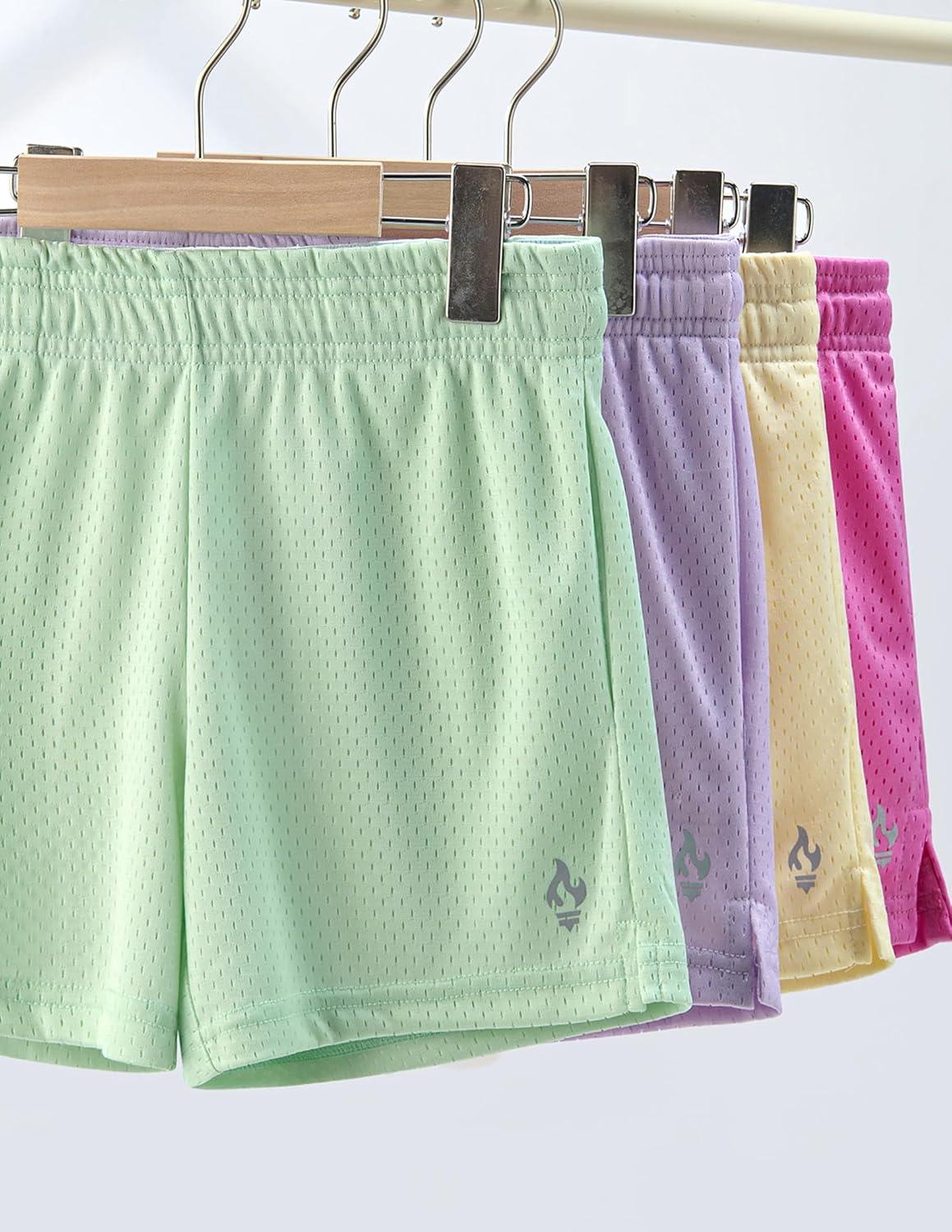 Liberty Pro 4 Pack: Girls Airy Mesh Active Athletic Sport Shorts, Youth Running Performance Clothes with Pockets(Yellow/Mint/Fuchsia/Lavender)
