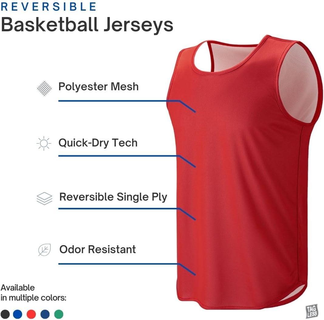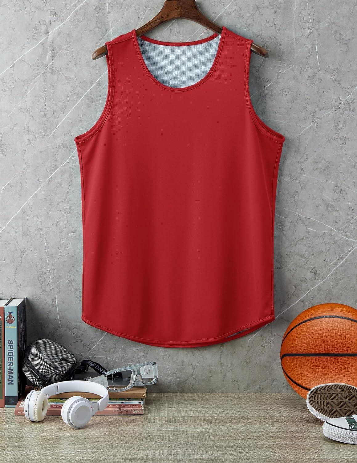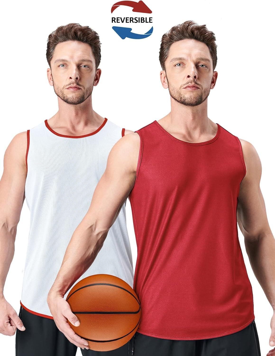 Liberty Pro Men’s Lightweight Reversible Rec Tanks, Mesh Basketball Jerseys Athletic Quick Dry Shirts Team Scrimmage Uniforms(Red/White)