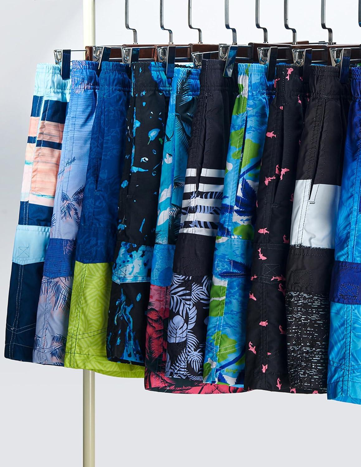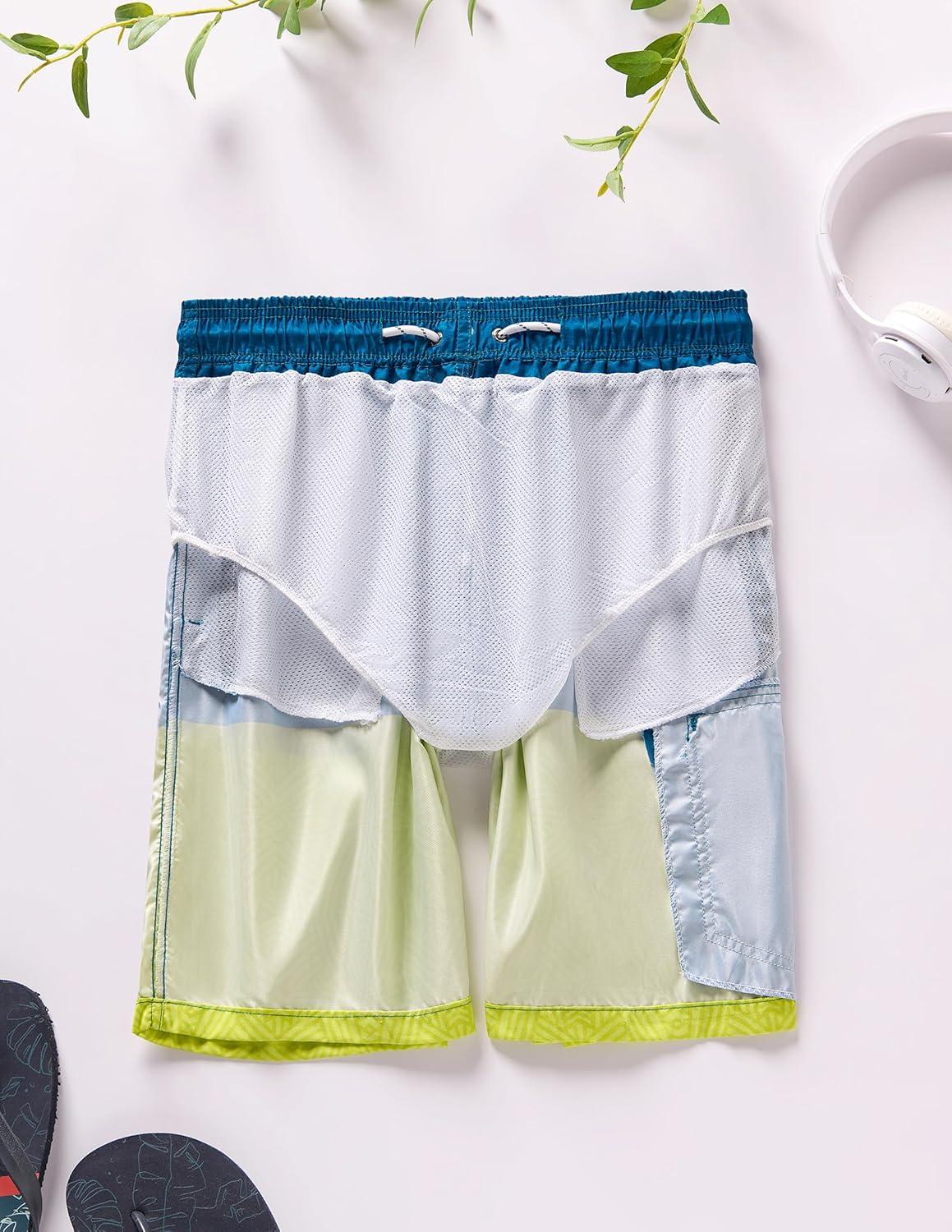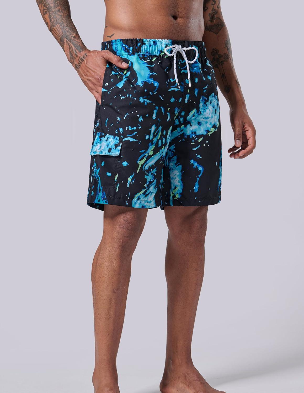 Men’s 9″ Quick Dry Swim Trunks with Mesh Lining and Cargo Pockets, Beach Shorts Bathing Suits(Geo Contrast / Neon Splash)