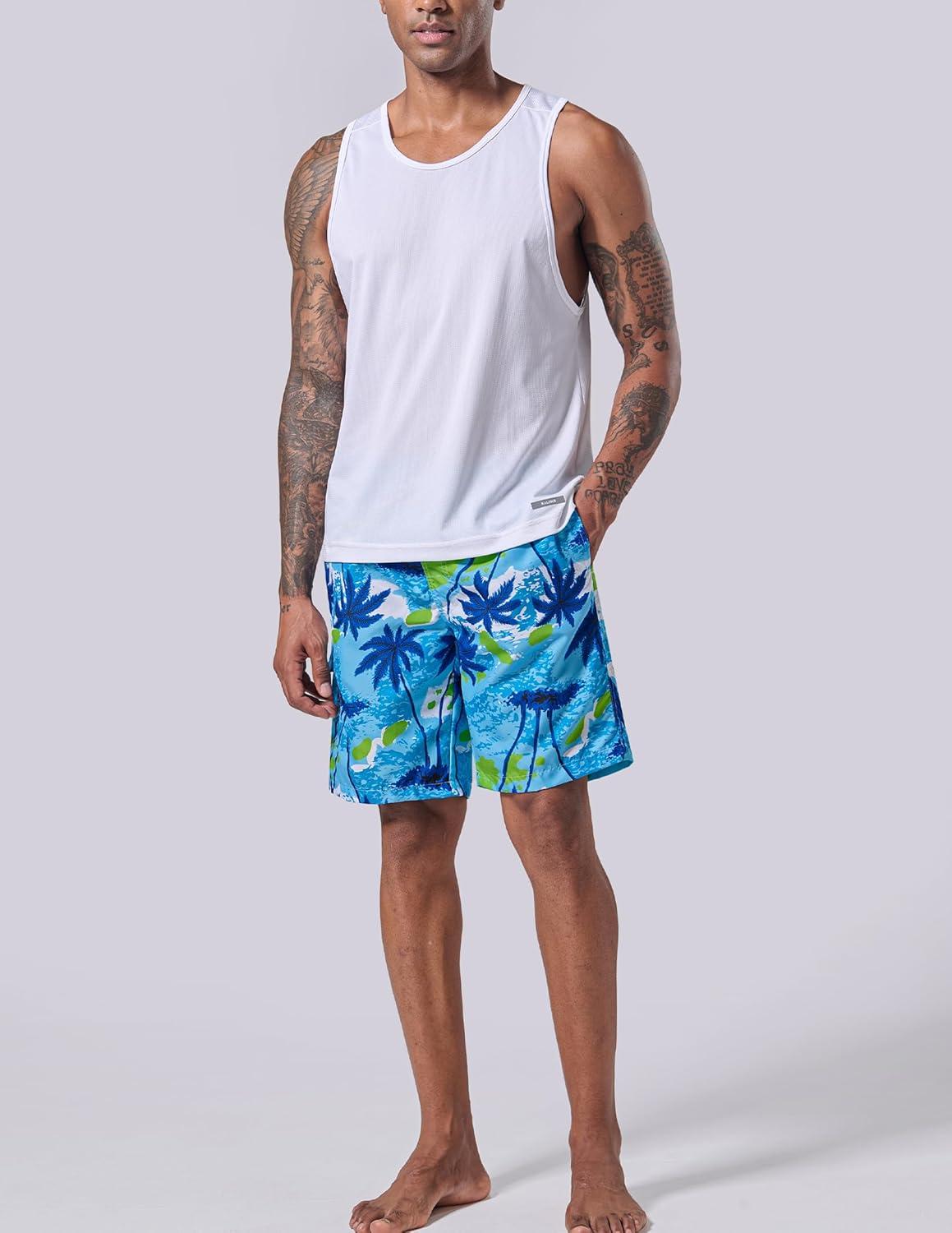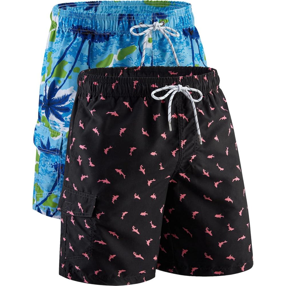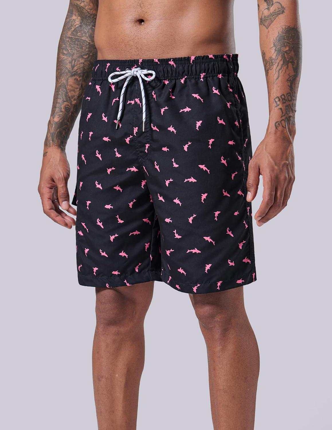 Men’s 9″ Quick Dry Swim Trunks with Mesh Lining and Cargo Pockets, Beach Shorts Bathing Suits(Shark Pattern / Palm Trees)