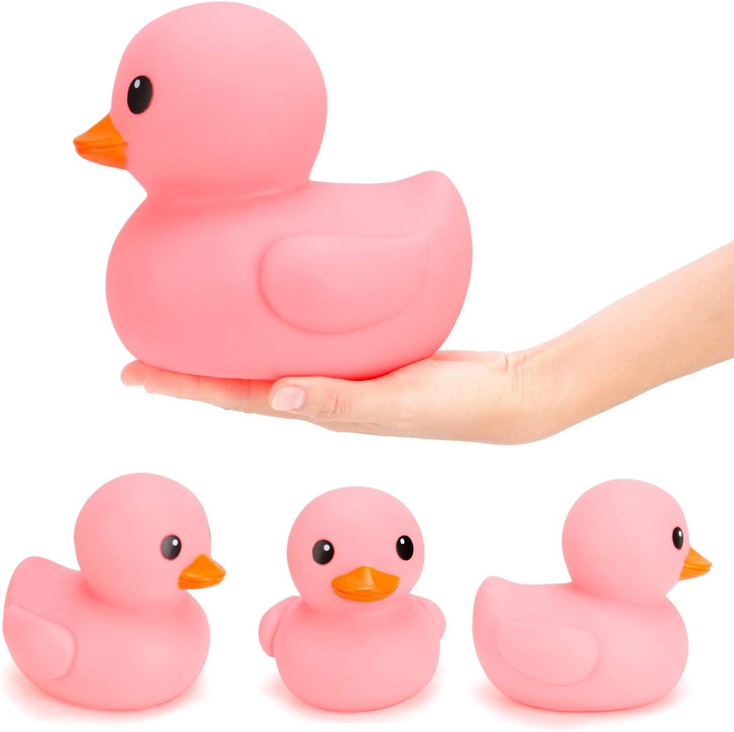 XL Jumbo Large Rubber Duck Bath Toy – No Hole Giant Duck, Waterproof Big Duckie Baby Shower Water Toy Without Hole for Kids Home, Decor, Party Gift 8-Inches (Yellow)(Pink)